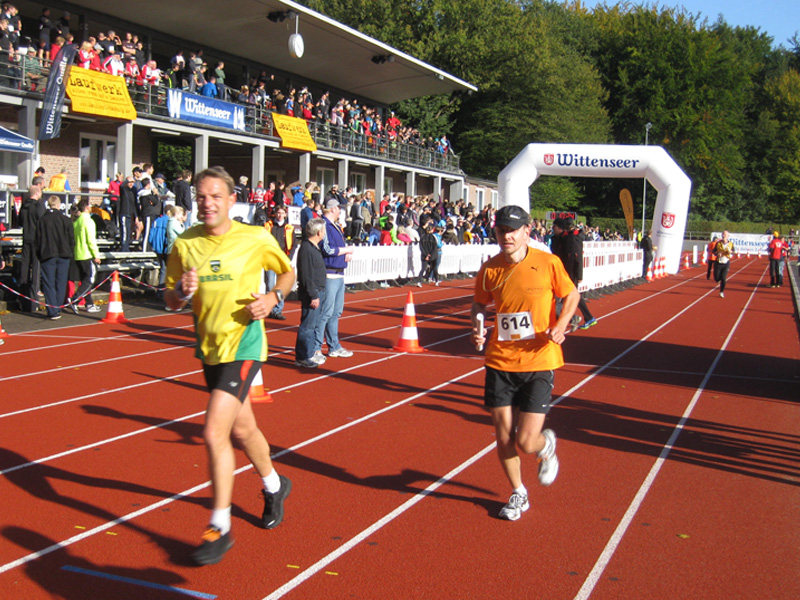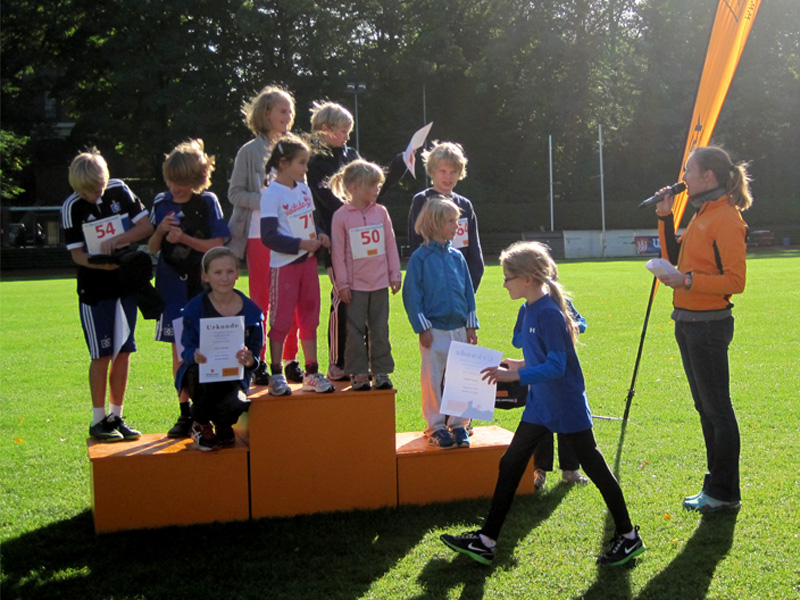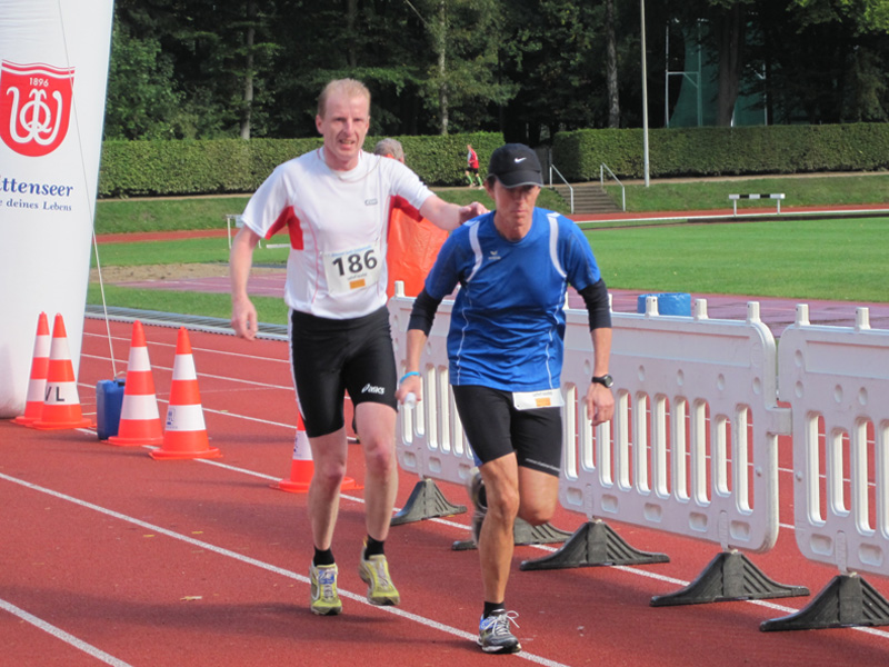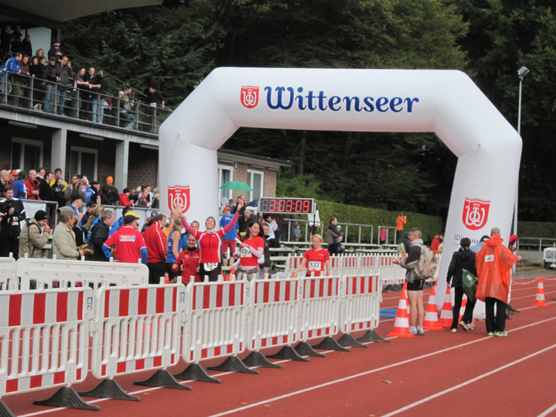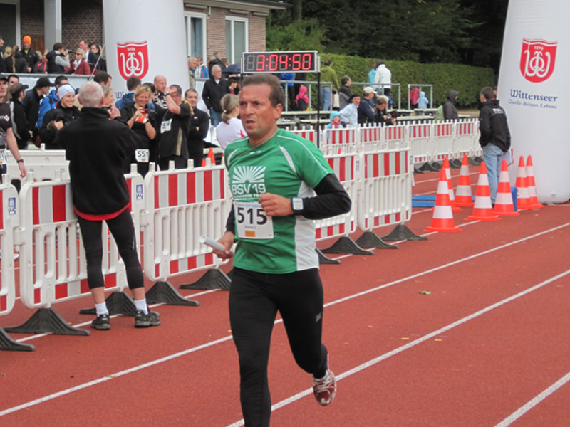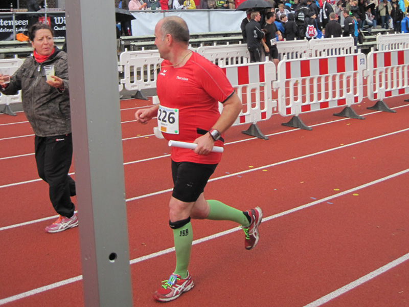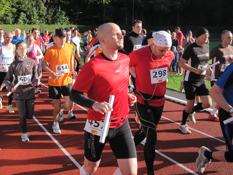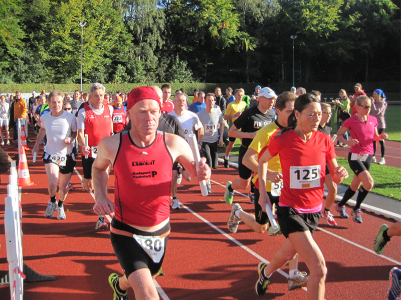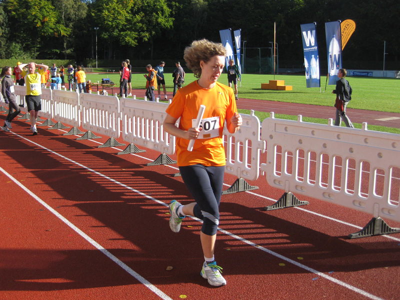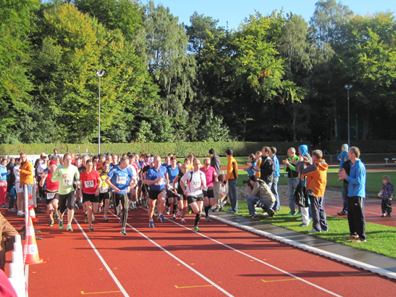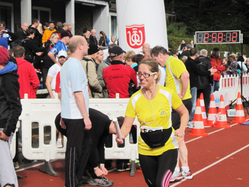 Für viele Läufer/innen ist diese Veranstaltung der Saisonabschluss: Zusammen mit Vereins- und Arbeitskollegen, Freunden wird nochmals in einer 5er Staffel die Marathonstrecke bewältigt. Zwei pottenflache Runden a 4,2 km im Stadtpark sind für jeden Staffelläufer zu bewältigen. Veranstaltungsmittelpunkt (Start, Rundenwechsel, Ziel) ist die wirklich prächtige Jahnkampfbahn. Schnellste Staffel war die Männerstaffel der Tri Michels Hamburg in 2:30:35. Neben ambitionierten Staffeln sah man in diesem Jahr viele Läufer/innen im Starterfeld, die „noch keine allzu lange Laufkarriere hinter sich haben“ (das freut uns sehr!).