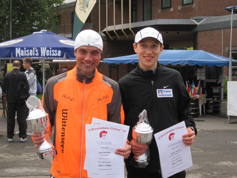 Tolle Stimmung und ein spannendes Rennen über 10 km beim 12. Brunsbütteler Citylauf. Bei „norddeutschem Sommerwetter“ mit viel Wind siegte Volker Goineau in 31:24 und war somit 22 Sekunden schneller als sein Kieler Trainingskollege Oleg Rantzow. Oleg war mit seiner Leistung nach längerer Verletzungspause zufrieden (Laufbericht im Blog). Brunsbüttel bietet seit Jahren einen bestens organisierten Volkslauf mit Volksfestcharakter: da lohnt sich auch ein möglicher längerer Anfahrtsweg!