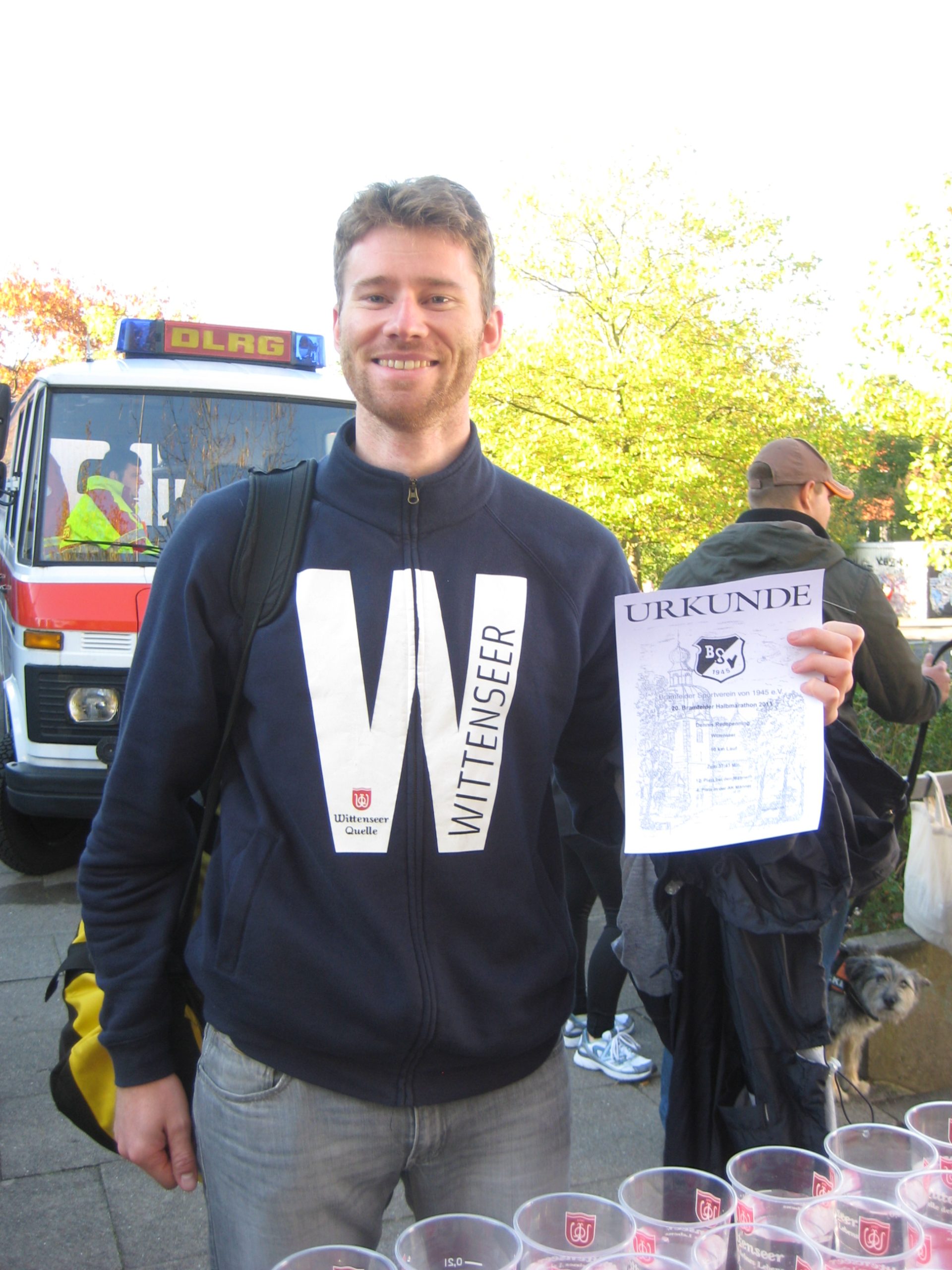 Der Bramfelder Halbmarathon und die HH Betriebssport Meisterschaften über 10 km wurden dieses Jahr zusammen gelegt, da der Speicherstadtlauf aufgrund von Bauarbeiten auf der Strecke ausfiel. Auch eisige Temperaturen von gefühlten -5 Grad Celsius konnten insgesamt ca. 600 Teilnehmer auf drei verschiedenen Strecken (10, 21 und 5km) nicht abhalten an den Start zu gehen. Der Startschuss wurde vom Ehrengast, der Boxerin Regina Halmich, gegeben. Gelaufen wurde auf einer Rundstrecke, die um das Sportgelände Gropiusring und den Bramfelder See führte. „Unser“ Oleg holte den 1. Platz auf der 10km Strecke.
