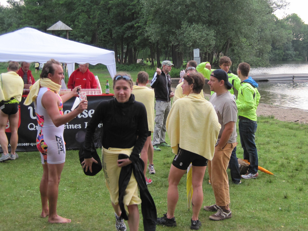 Bei dem doch recht dunklen Himmel merkte man nicht viel von dem längsten Tag des Jahres. Triathlon als wirkliches Naturerlebnis ohne viel Schick/Schnack am Großensee (Naturbad) in Trittau. Wer diese Sportart einmal kennenlernen möchte ist bei diesem Triathlon allerbestens aufgehoben.