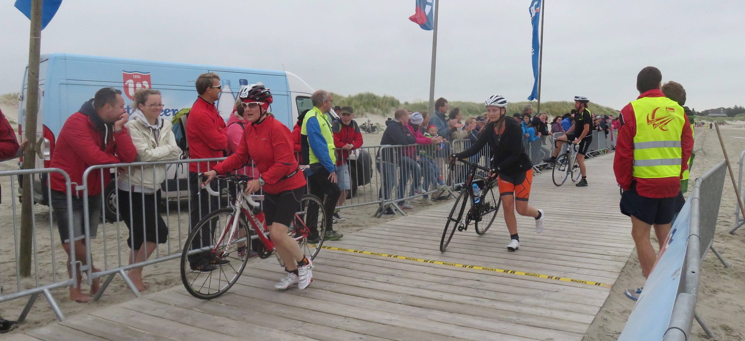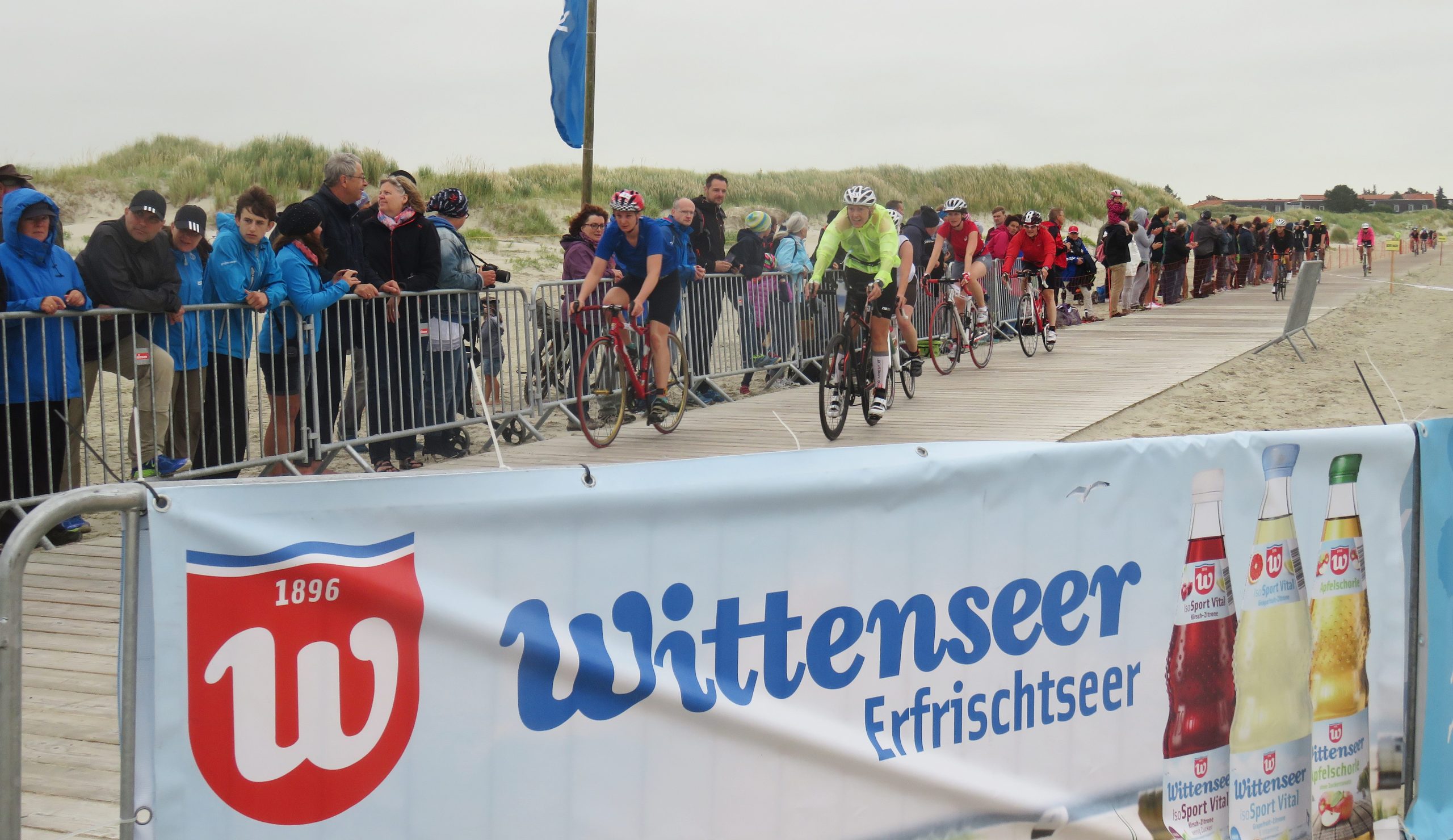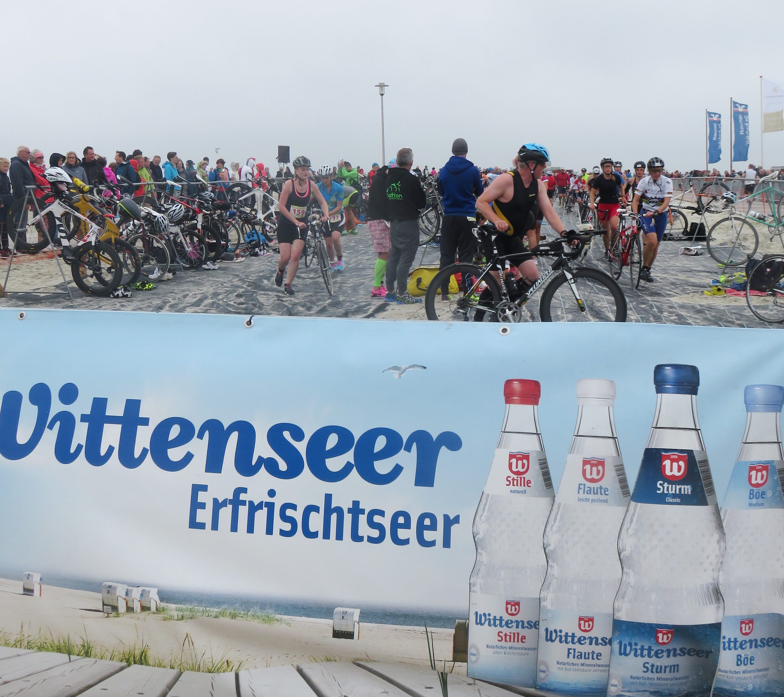 Direkt am Strand wurden aus den Triathleten gestern aufgrund des straken Windes gezwungenermaßen Duathleten, da das Schwimmen kurzfristig abgesagt werden musste. Das tat sowohl der Stimmung als auch der Leistung der 700 Teilnehmer jedoch keinen Abbruch.