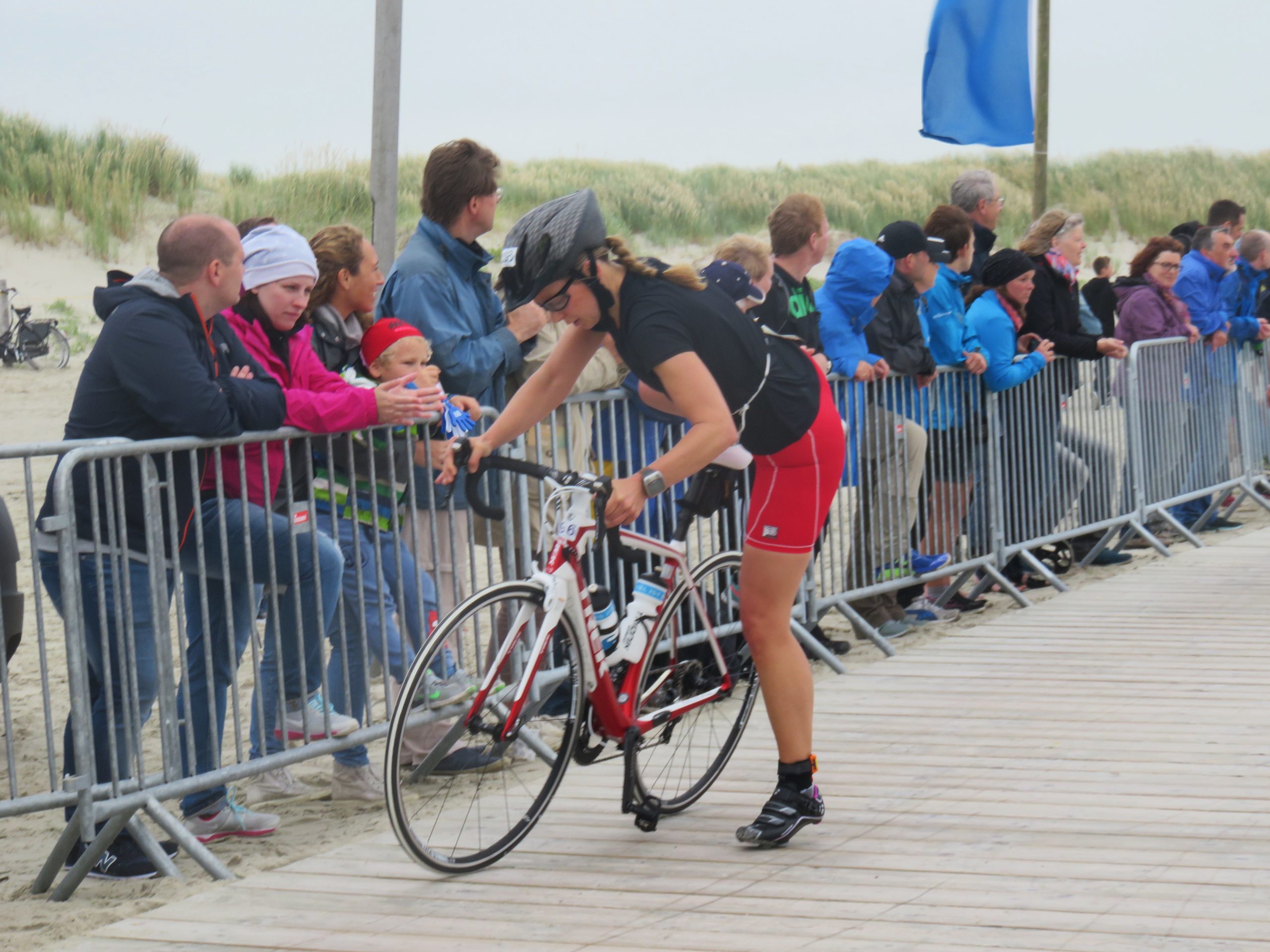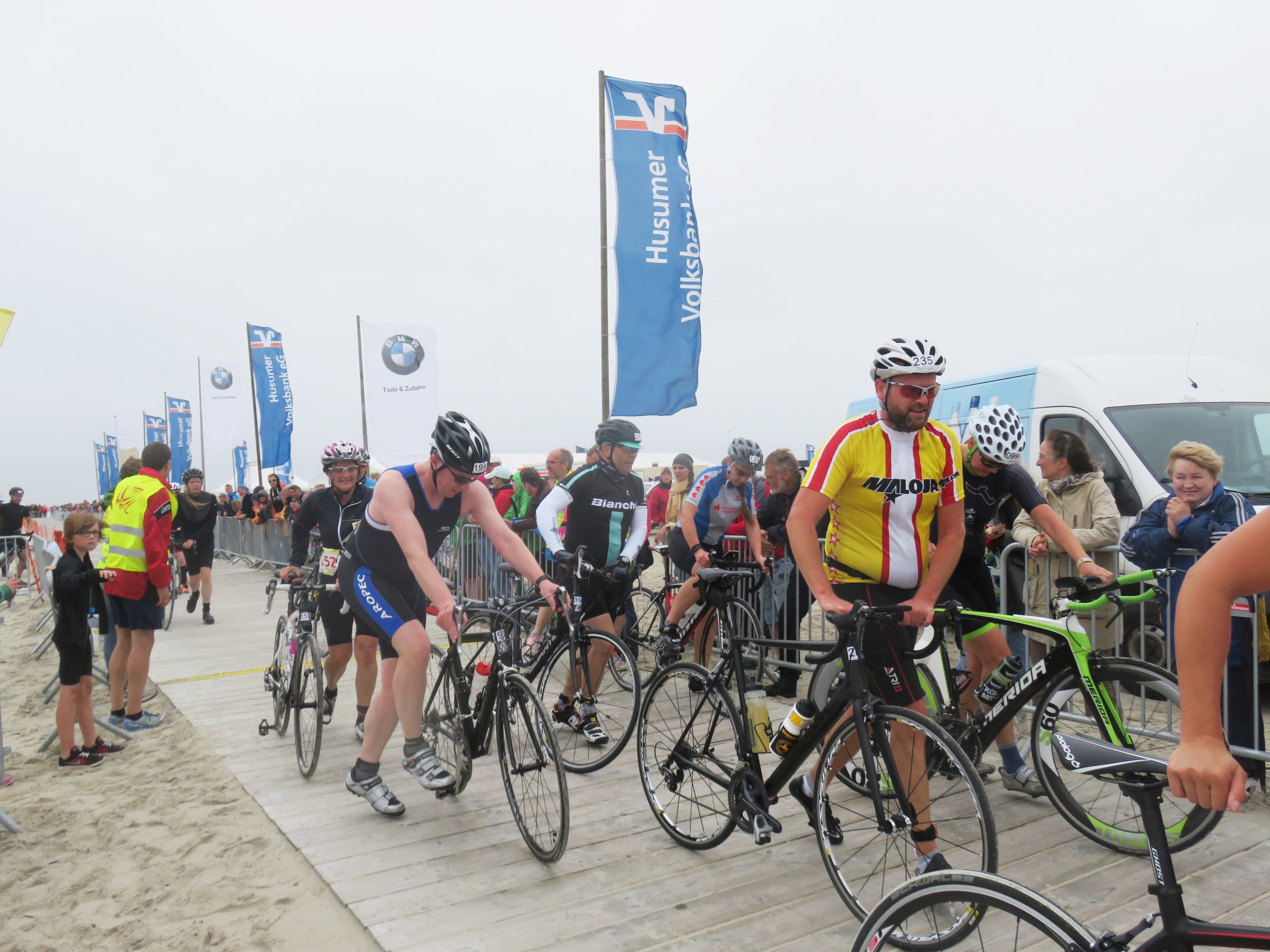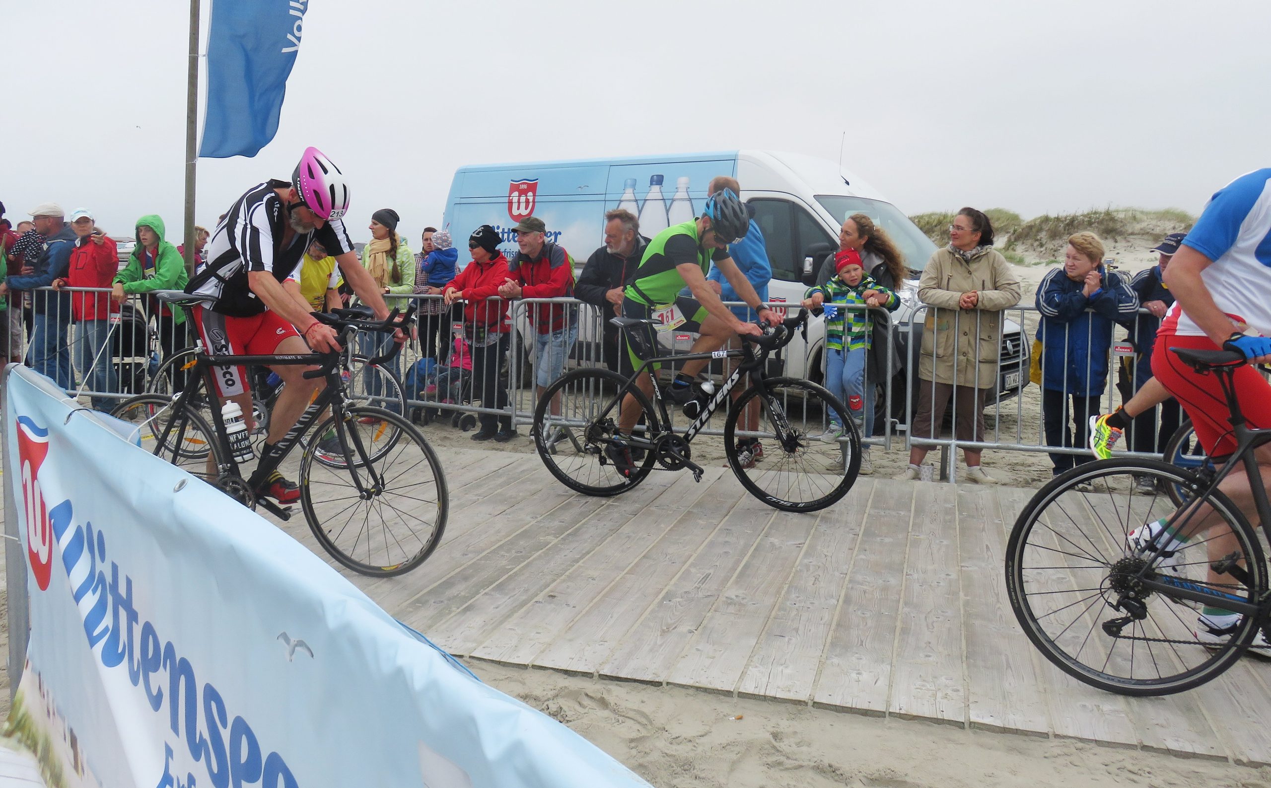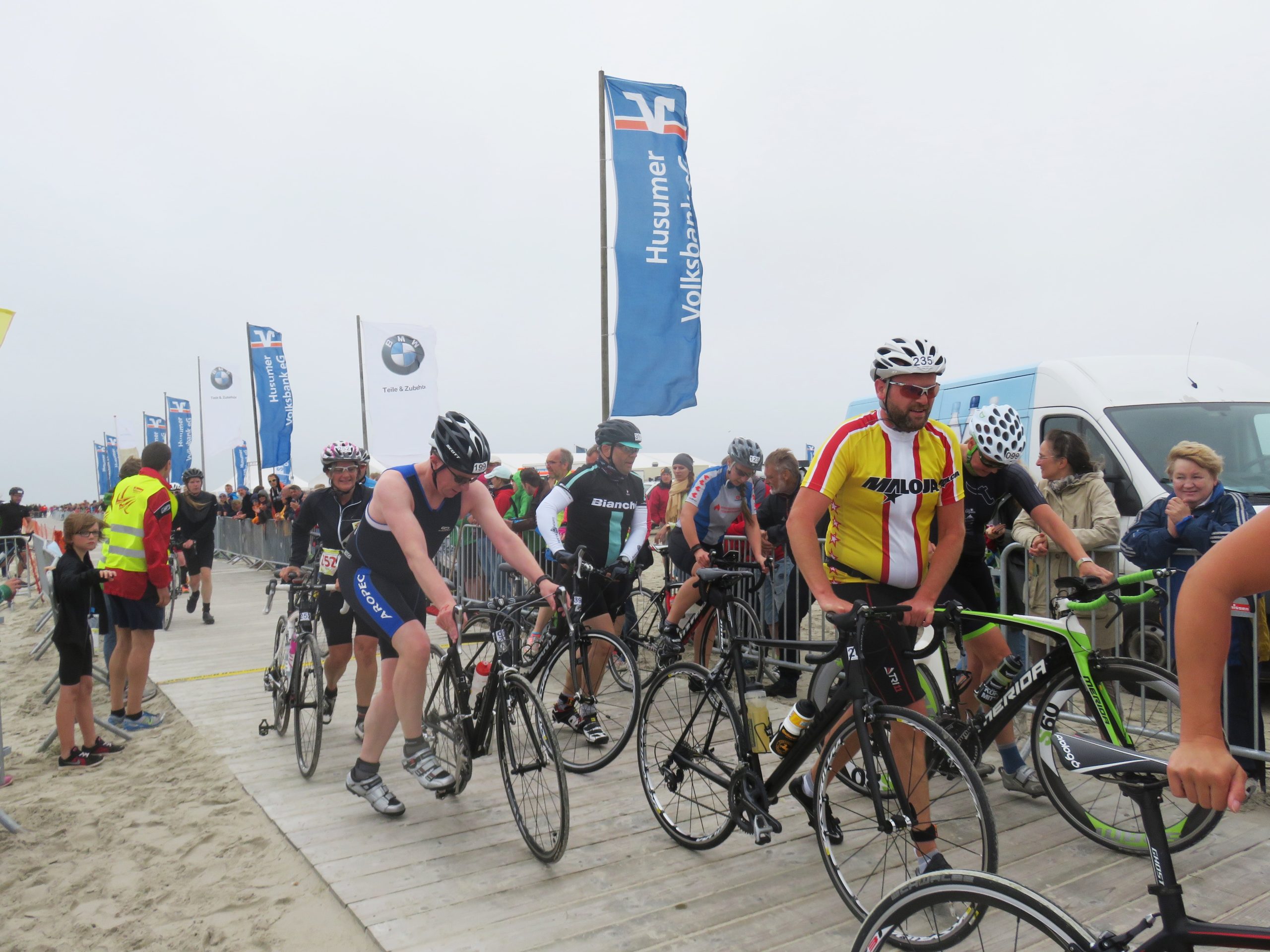 Direkt am Strand wurden aus den Triathleten gestern aufgrund des straken Windes gezwungenermaßen Duathleten, da das Schwimmen kurzfristig abgesagt werden musste. Das tat sowohl der Stimmung als auch der Leistung der 700 Teilnehmer jedoch keinen Abbruch.