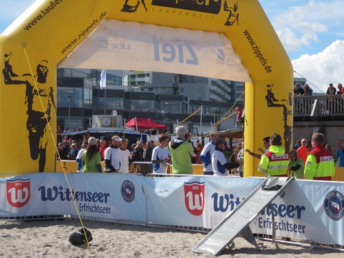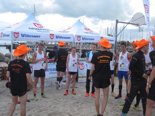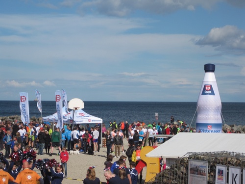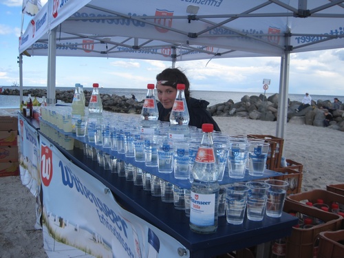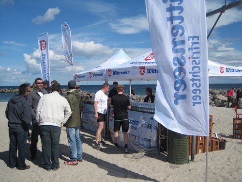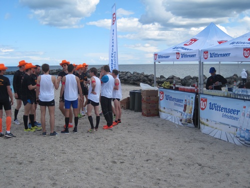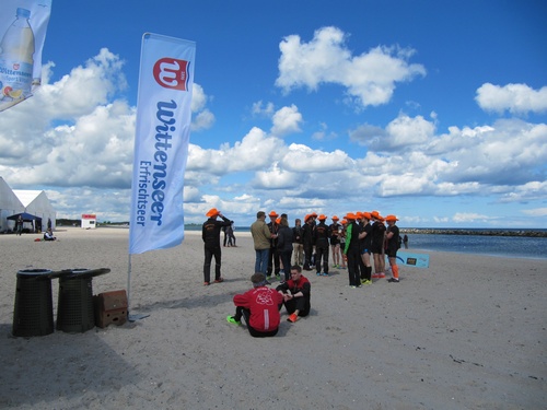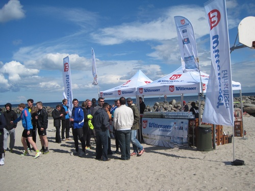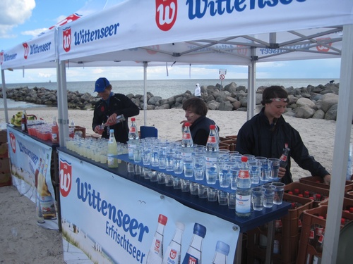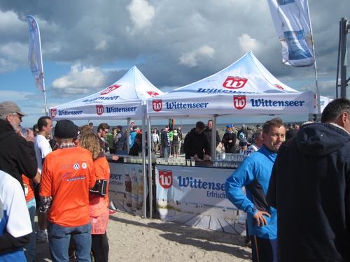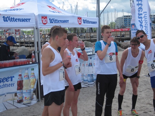 Die Stimmung im Ziel war klasse, einige Teams nahmen zur Erfrischung ein Bad in der Ostsee, viele nutzten dazu lieber den Wittenseer Verpflegungsstand.