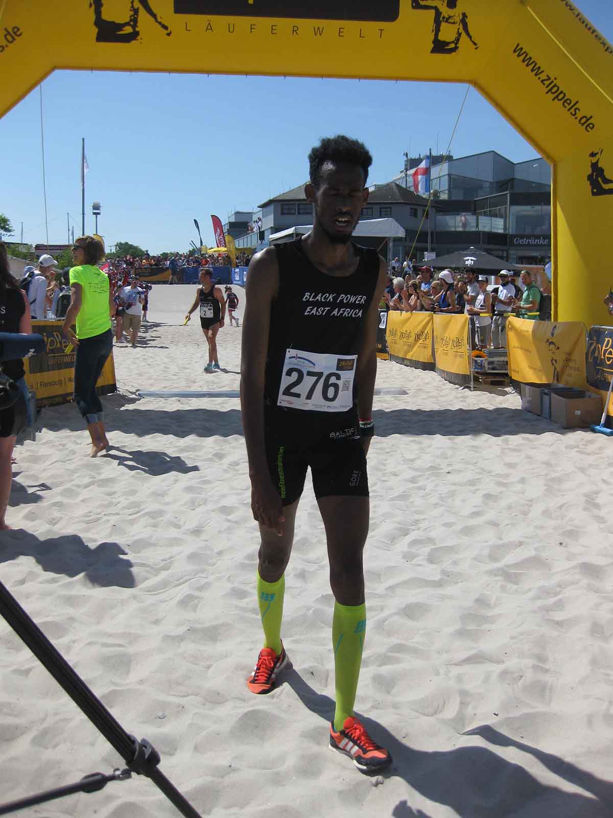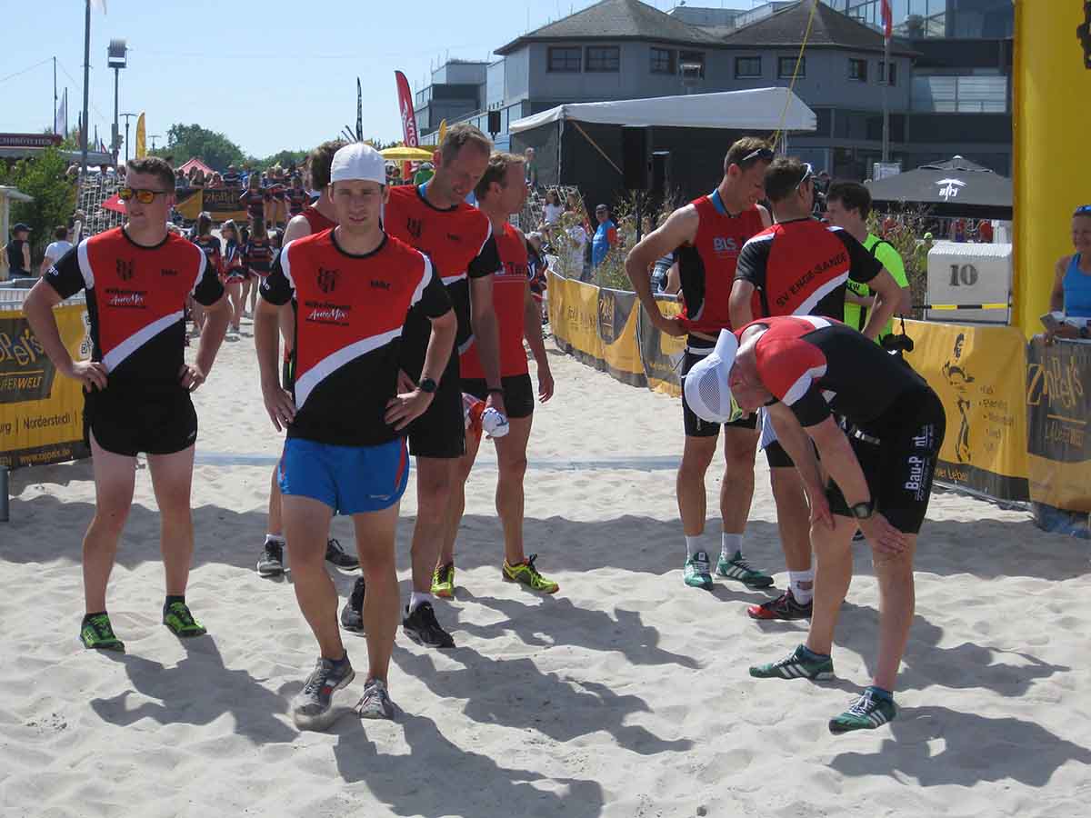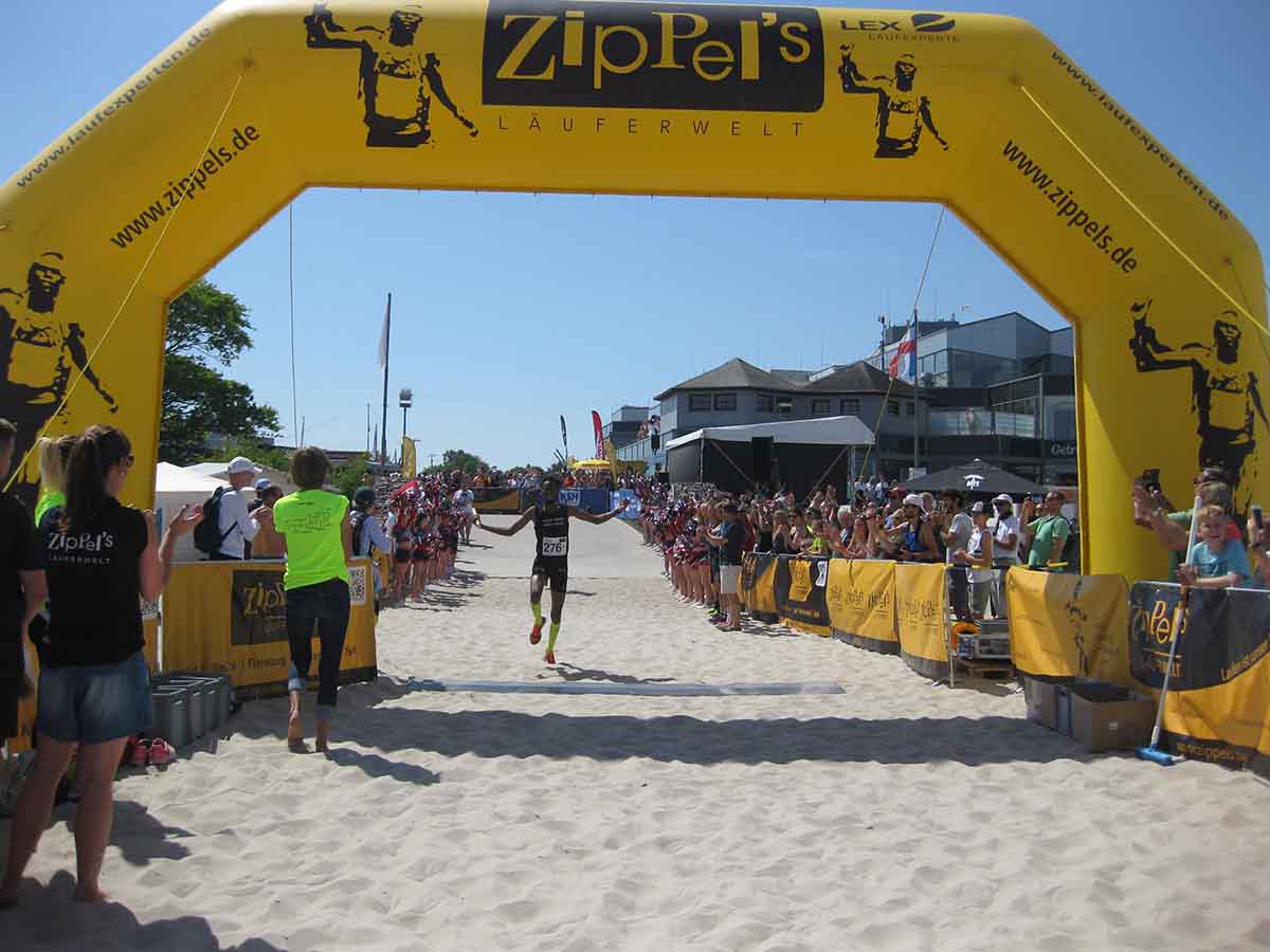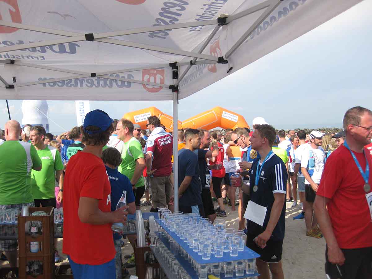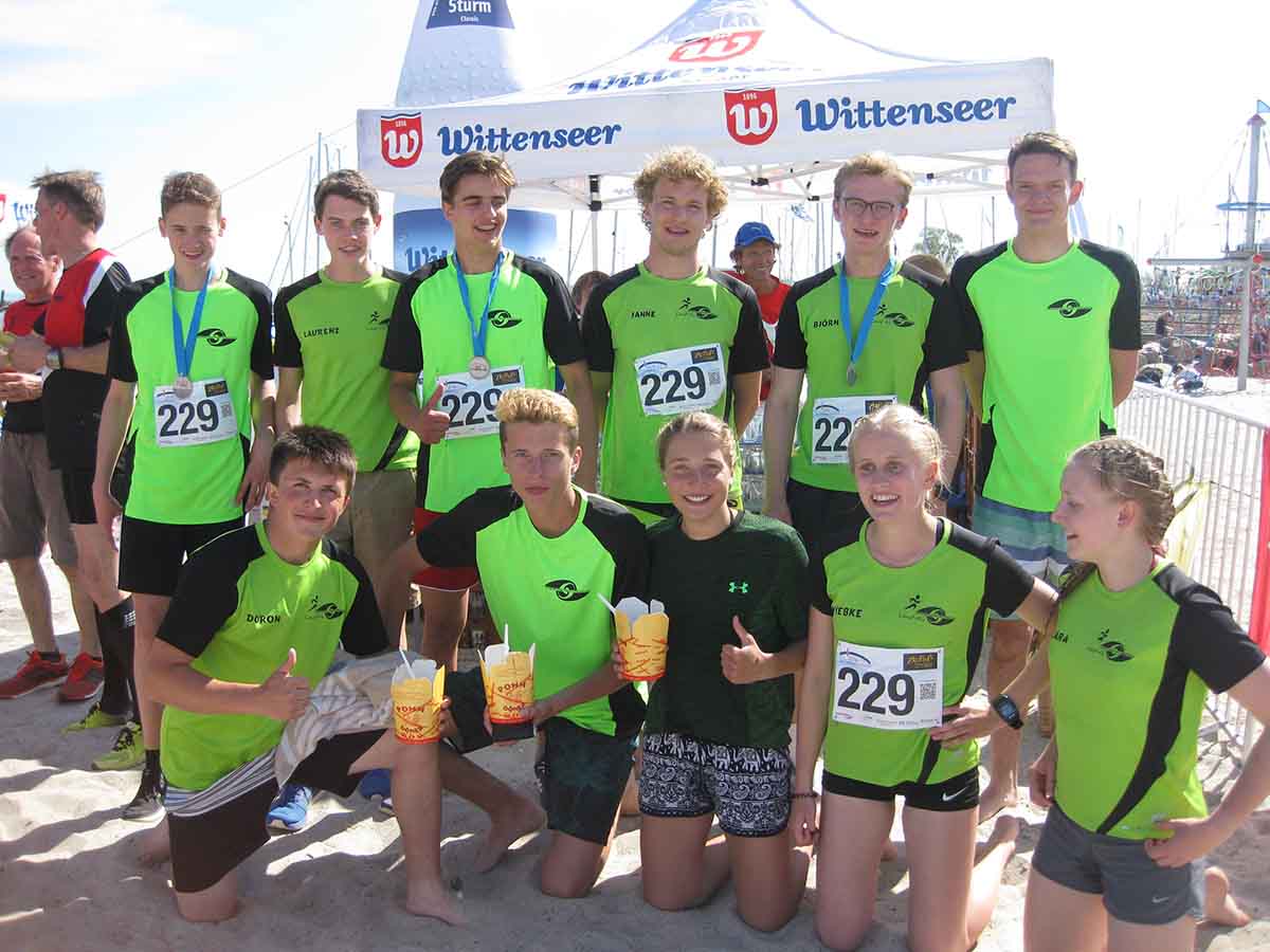 Die schnellste Staffel, die „BLACK POWER EAST AFRICA“, benötigten für die Gesamtstrecke nur 5 Stunden und 20 Minuten und erreichten den Strand um 14:20 Uhr. Die Staffel des „o.t.n Lauflabors“ war den Siegern dicht auf den Fersen und konnte sich den zweiten Platz sichern, während die „Hannovers Weisse Massai“ als dritte Staffel den Zieleinlauf durchquerten. Aber auch alle darauffolgenden Staffeln wurden mit tosendem Applaus an der Strandpromenade in Damp empfangen.
