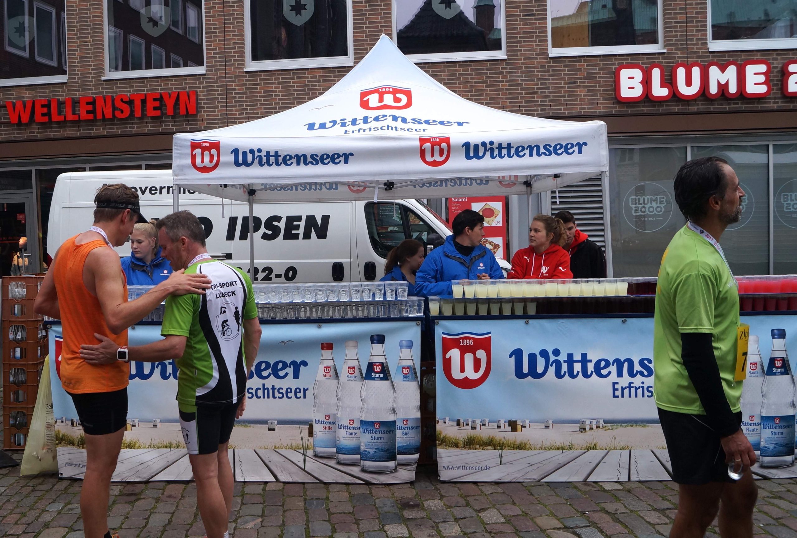 Ein besonderes Highlight waren auch die 39 Einradfahrer, die sich ein Rennen über 1km lieferten. Außerdem wurden alle Sportler auf dem Lübecker Marktplatz in fröhlicher Atmosphäre zum ersten Mal auch von der Wittenseer Quelle mit reichlich Erfrischungen empfangen. Zwischen Live-Musik, Getränken und Snacks fand schließlich die Siegerehrung statt und ließ die Veranstaltung trotz des grauen Himmels ein stimmungsvolles Ende nehmen. Wir hoffen, auch im nächsten Jahr dabei zu sein und möchten außerdem unseren Helferinnen und Helfern für ihre Unterstützung danken.