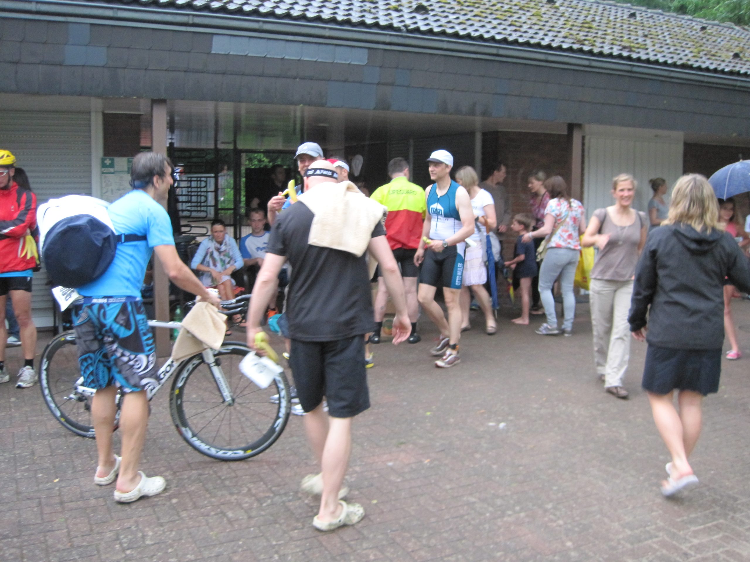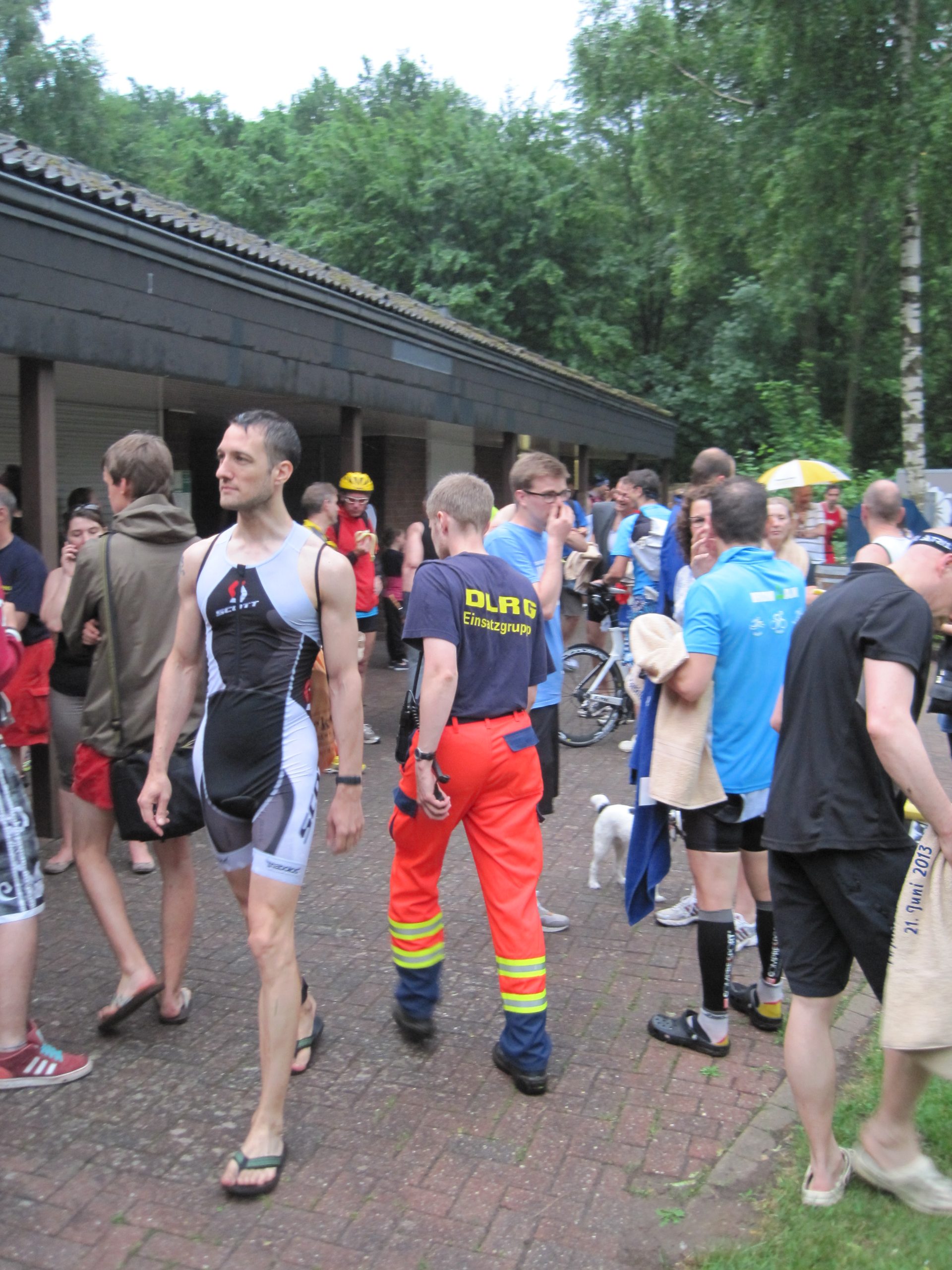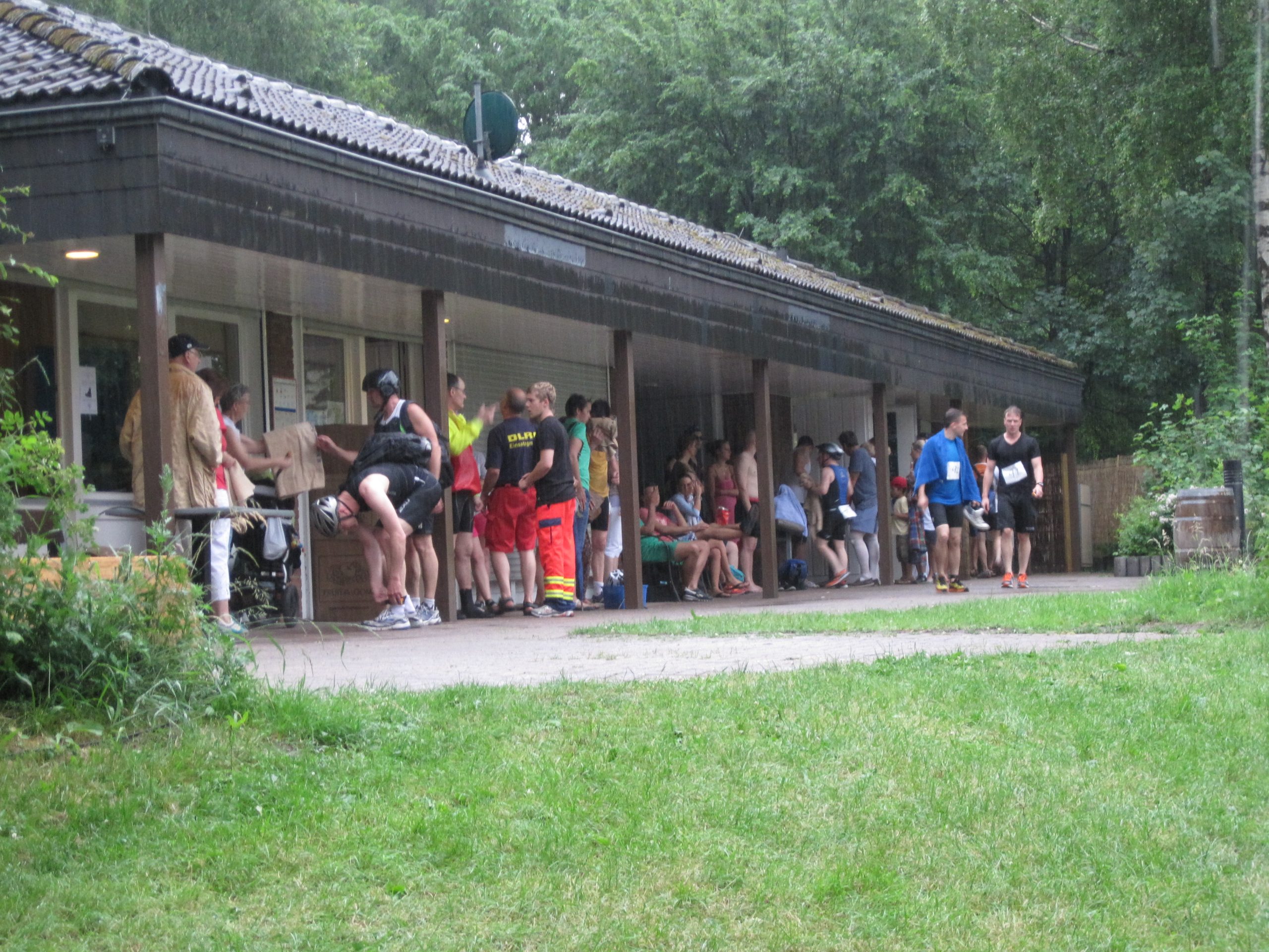 Gegen Wetterkapriolen kann man nichts machen! Nach dem Schwimmen war Schluss. Starke Regenfälle führten dazu, dass die Polizei die Radstrecke sperrte, der Wettkampf wurde abgebrochen. Eine richtige Entscheidung. Rechtzeitige Anmeldung für 2014 empfehlenswert: Triathlon Perle ohne Schnickschnack, Natur pur…..wie in den Anfangsjahren der Sportart.