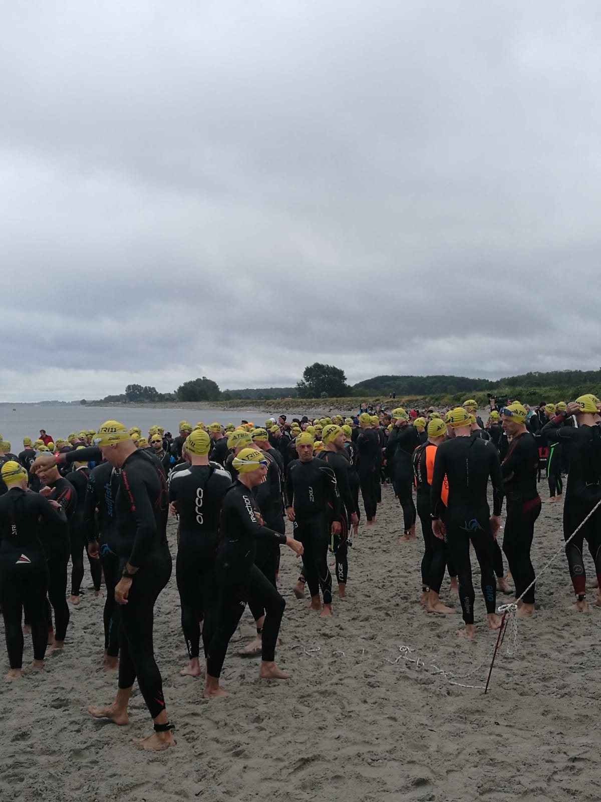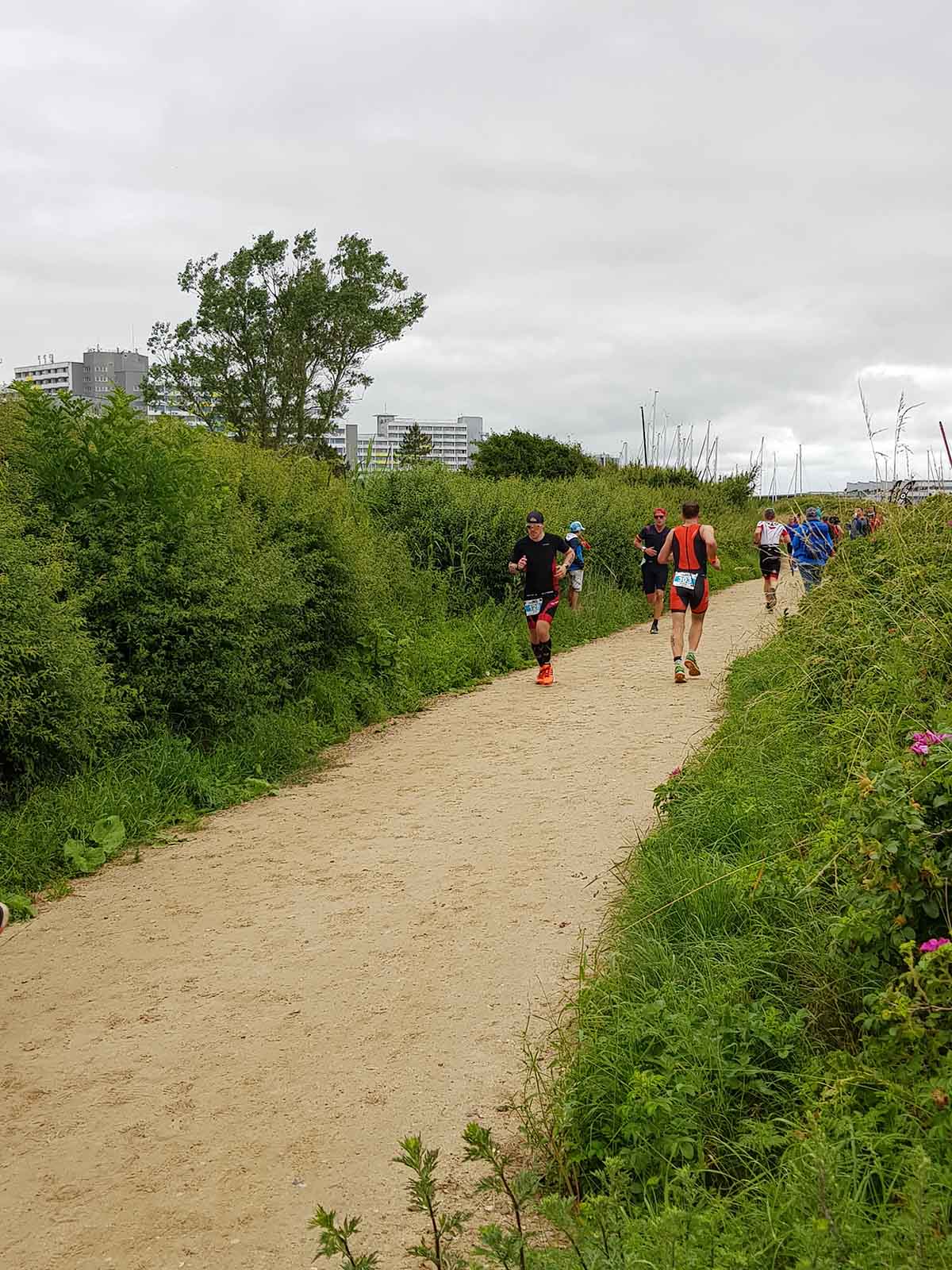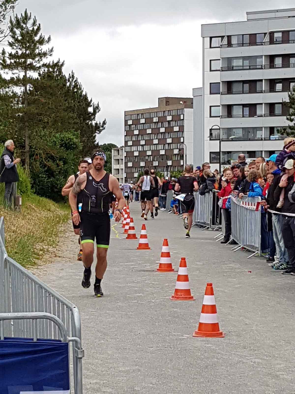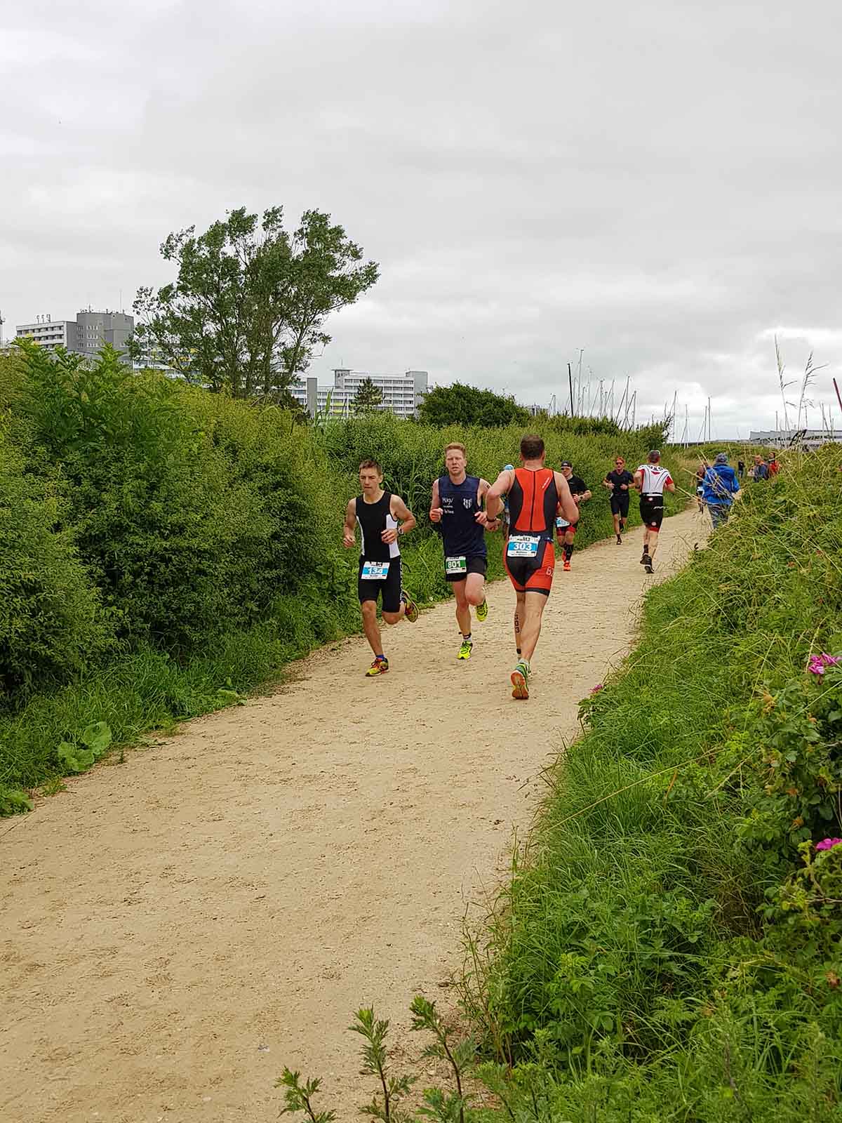 Anschließend wurde in der Wechselzone auf dem Yachthafen-Gelände der Neo gegen das Triathlonrad eingetauscht und 90 km geradelt. Danach ging es auf die neue Laufstrecke, die nun nicht mehr wie im Vorjahr von Damp aus nach Norden, sondern nach Süden führt. Die neue Laufstrecke führt im ersten Teil durch die schöne Dünenlandschaft parallel zum Strand und knickt dann ein bisschen ins Hinterland ab. Der Untergrund auf dem ersten Drittel besteht aus Sand, der allerdings fest und gut zu laufen ist. Sean Donelly war als erster nach 3:52:15 h zurück im Ziel auf der Niebymole und wurde gebührend von den Zuschauern empfangen. Trotz des trüben Wetters, das für die Athleten allerdings recht angenehm war, war die Stimmung im Ziel hervorragend und auch der Durst nach Zielverpflegung von Wittenseer groß. Alle Ergebnisse findet ihr hier: http://gluecksburg-half.r.mikatiming.de/2018/