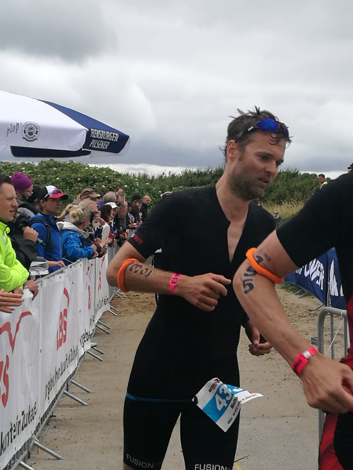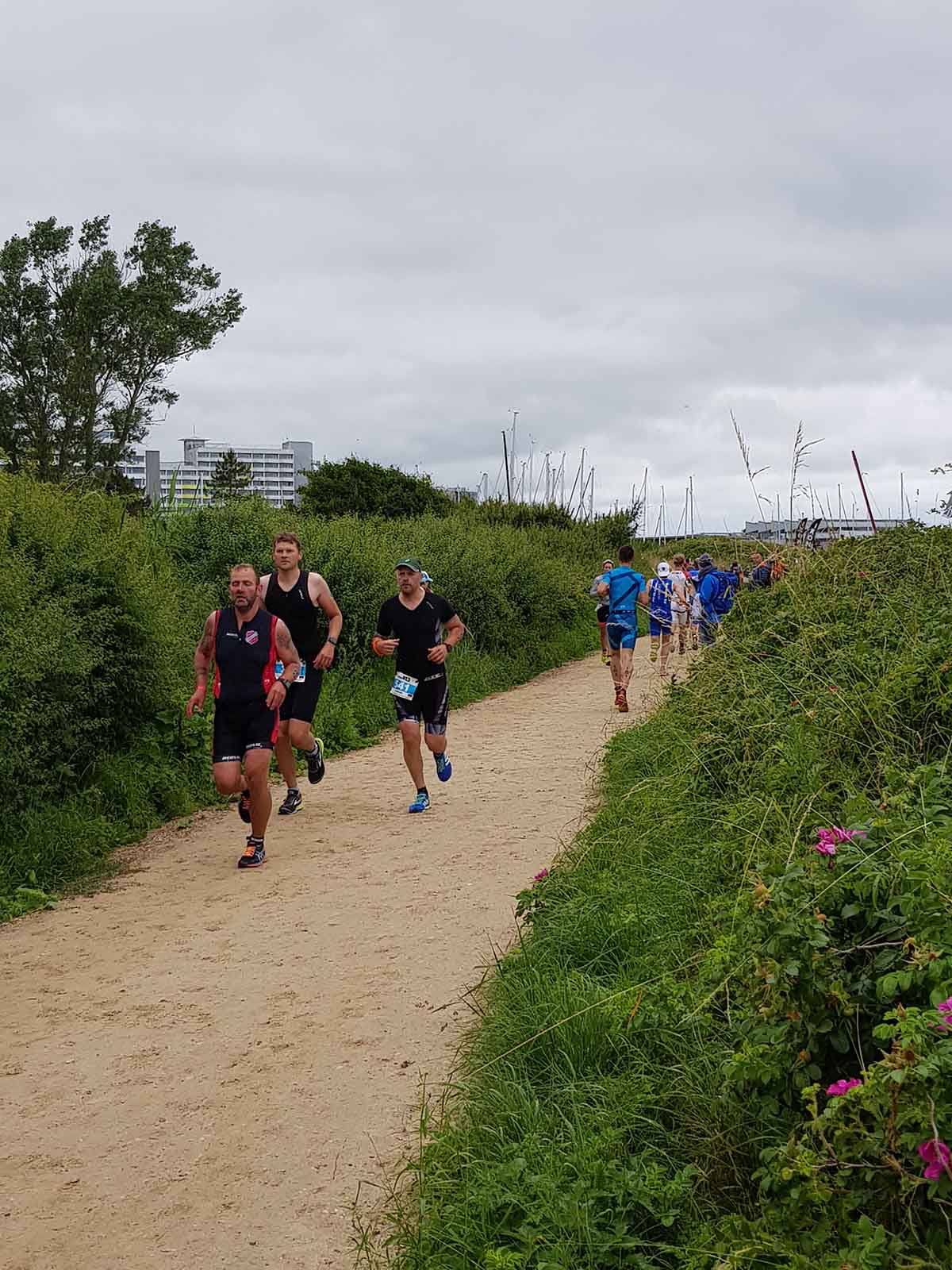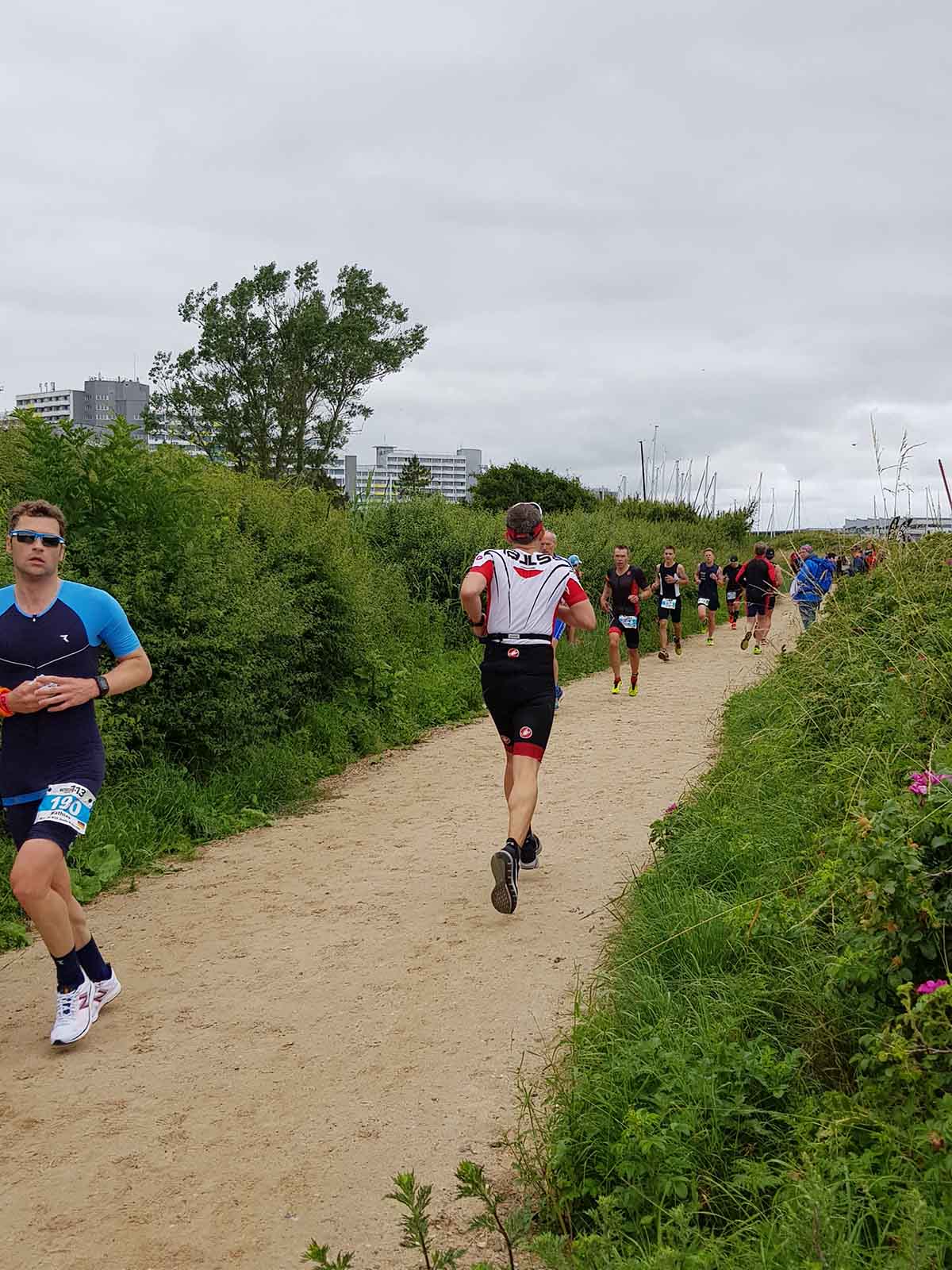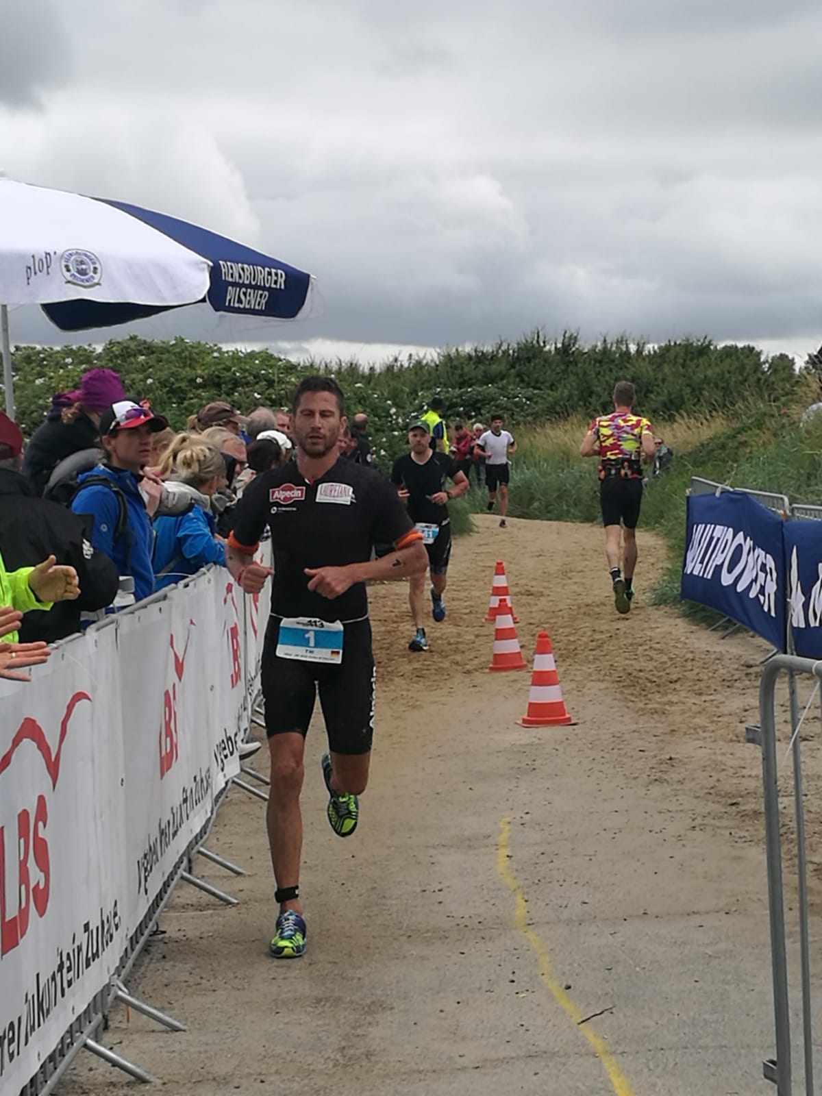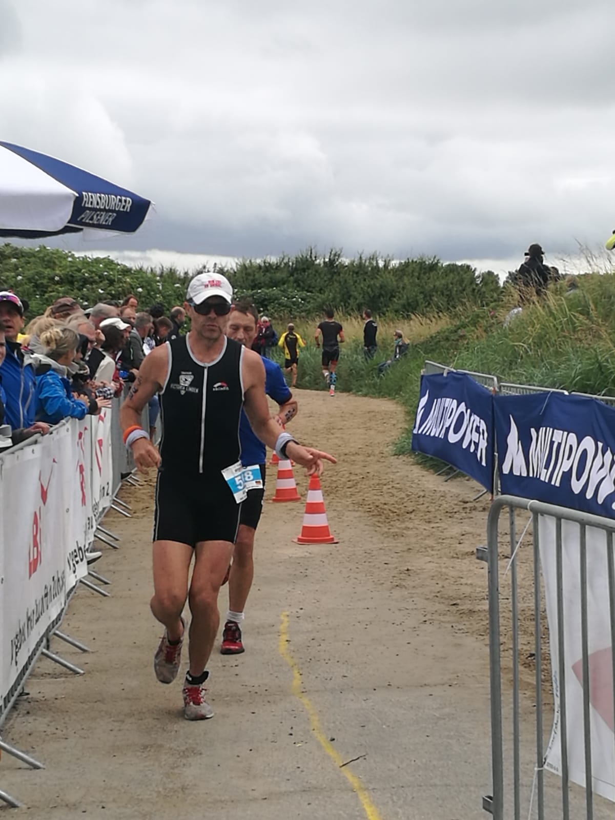 Anschließend wurde in der Wechselzone auf dem Yachthafen-Gelände der Neo gegen das Triathlonrad eingetauscht und 90 km geradelt. Danach ging es auf die neue Laufstrecke, die nun nicht mehr wie im Vorjahr von Damp aus nach Norden, sondern nach Süden führt. Die neue Laufstrecke führt im ersten Teil durch die schöne Dünenlandschaft parallel zum Strand und knickt dann ein bisschen ins Hinterland ab. Der Untergrund auf dem ersten Drittel besteht aus Sand, der allerdings fest und gut zu laufen ist. Sean Donelly war als erster nach 3:52:15 h zurück im Ziel auf der Niebymole und wurde gebührend von den Zuschauern empfangen. Trotz des trüben Wetters, das für die Athleten allerdings recht angenehm war, war die Stimmung im Ziel hervorragend und auch der Durst nach Zielverpflegung von Wittenseer groß. Alle Ergebnisse findet ihr hier: http://gluecksburg-half.r.mikatiming.de/2018/