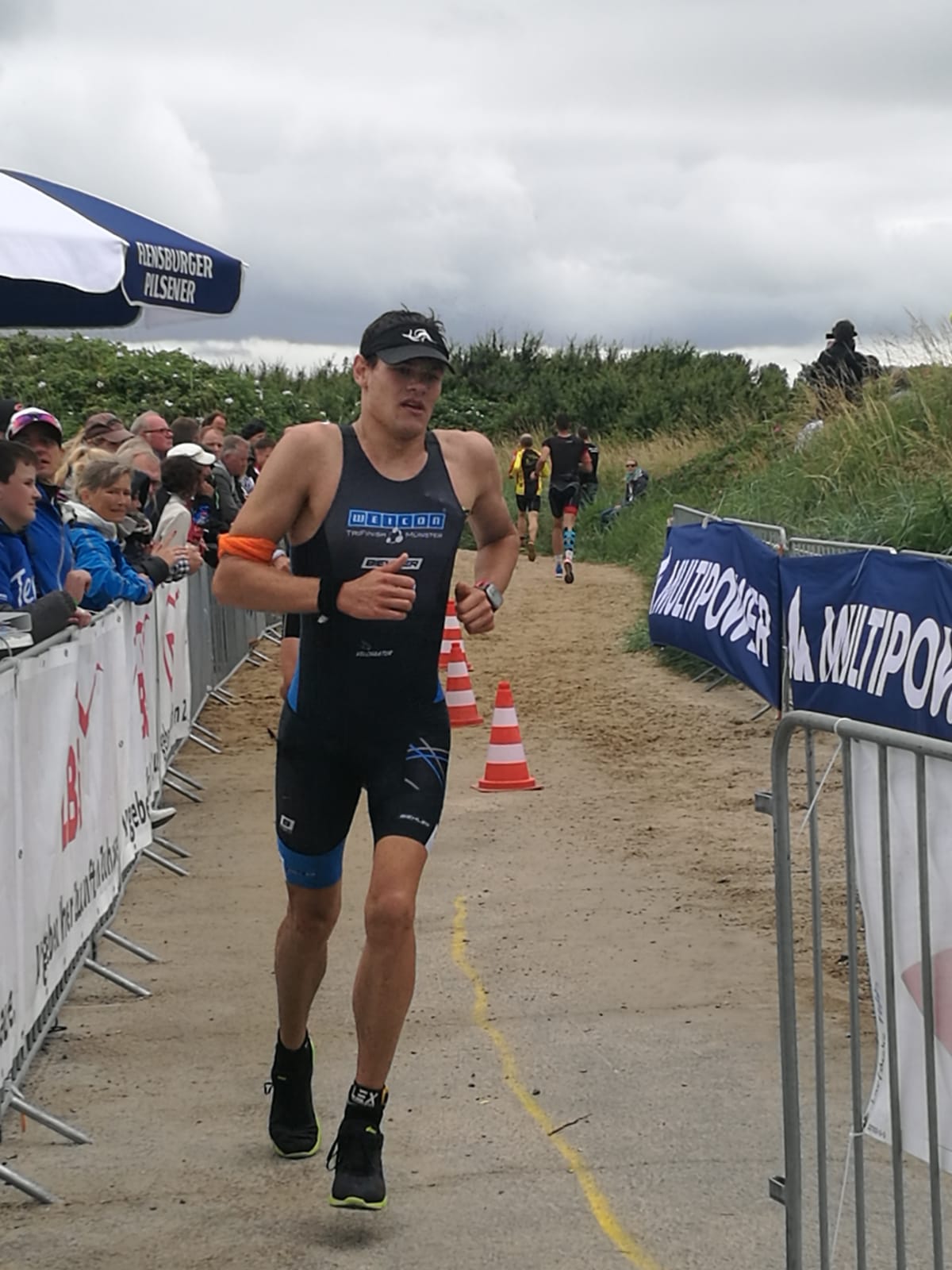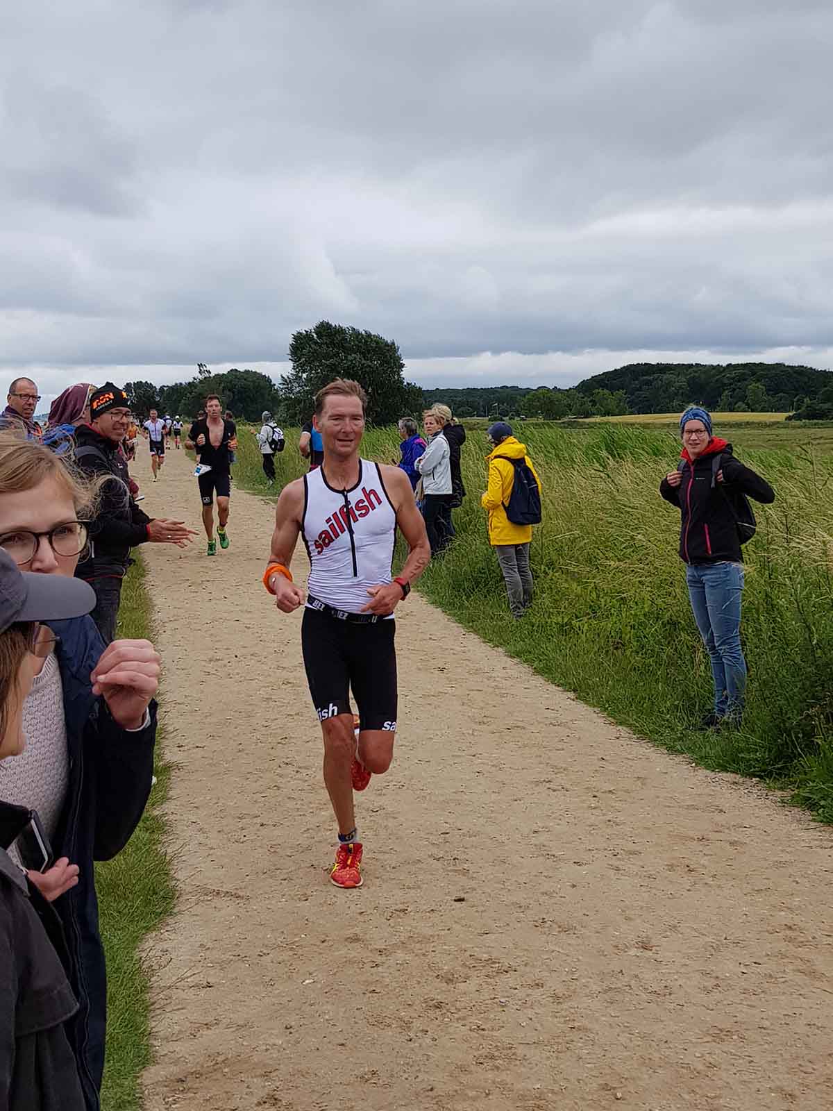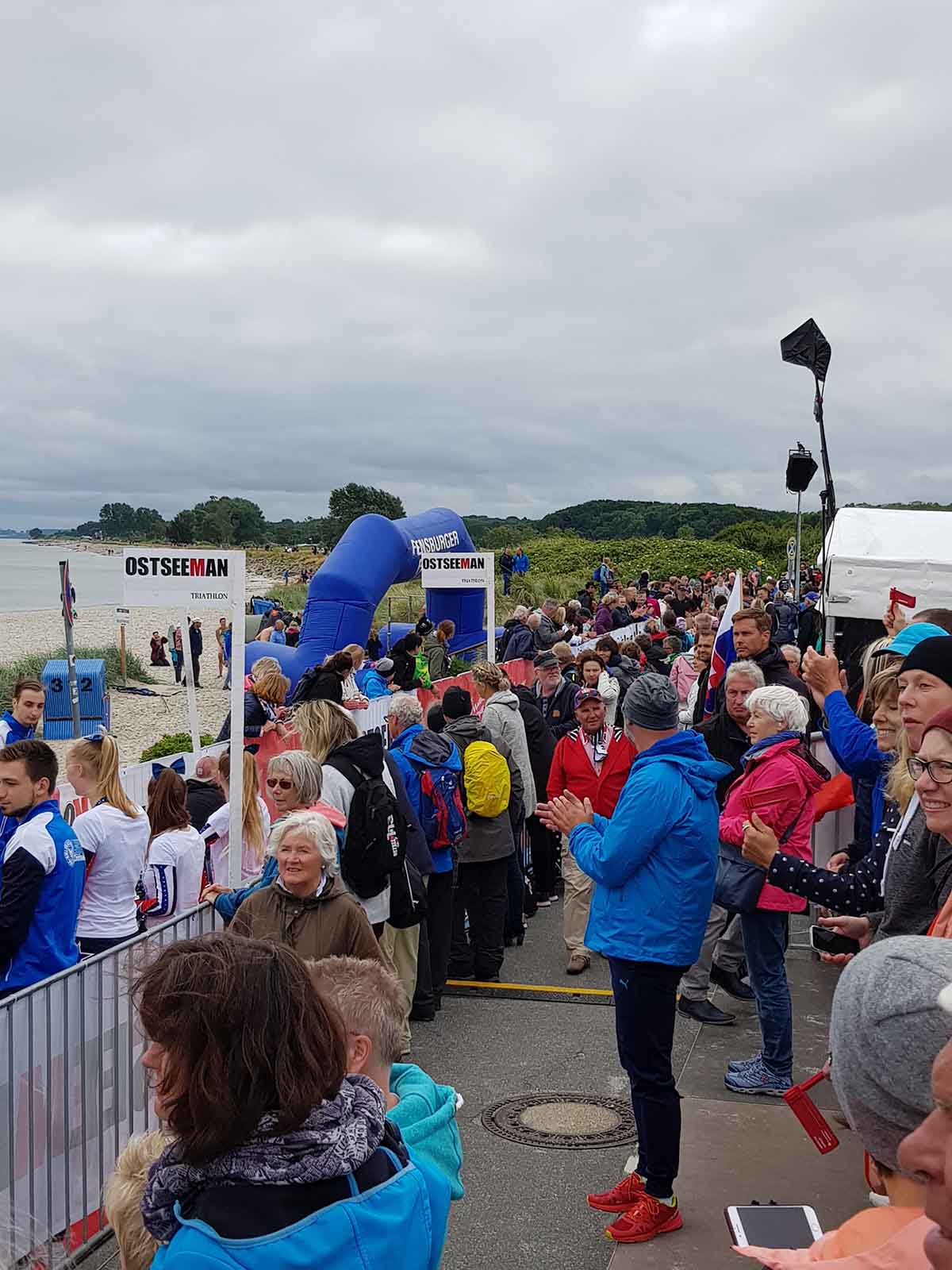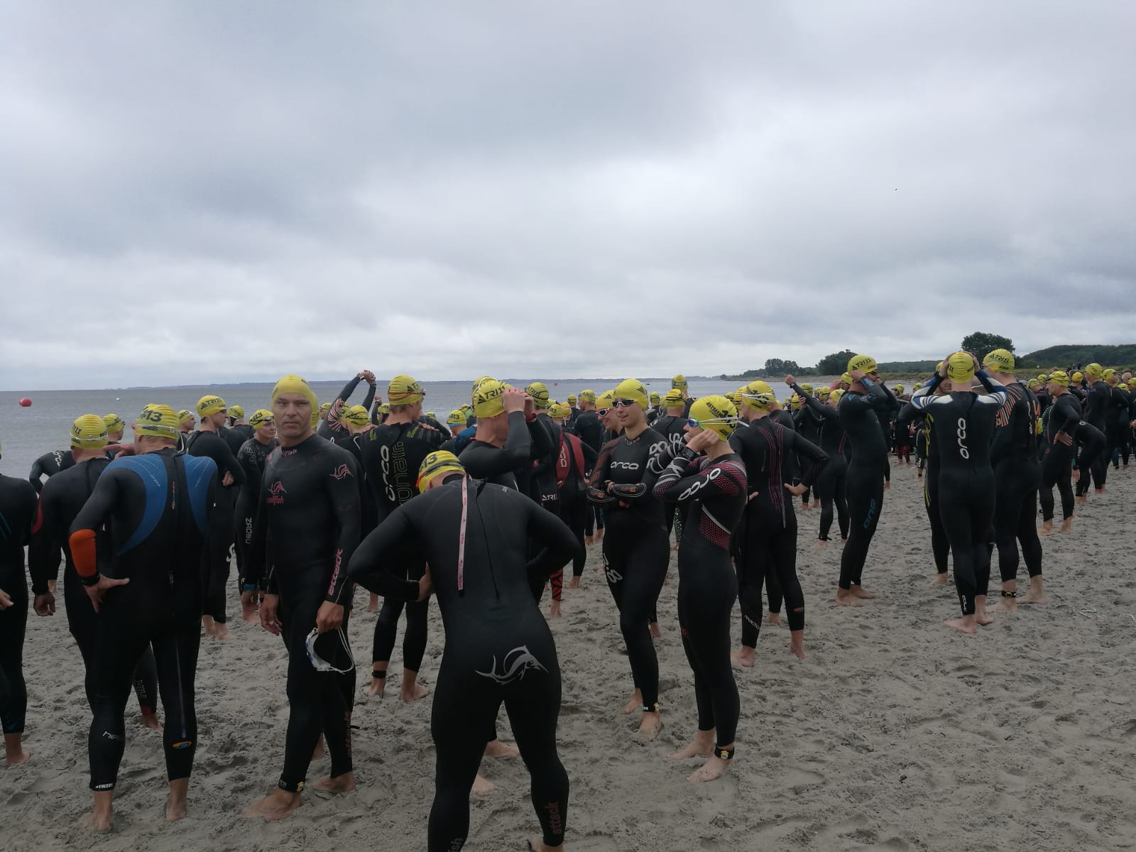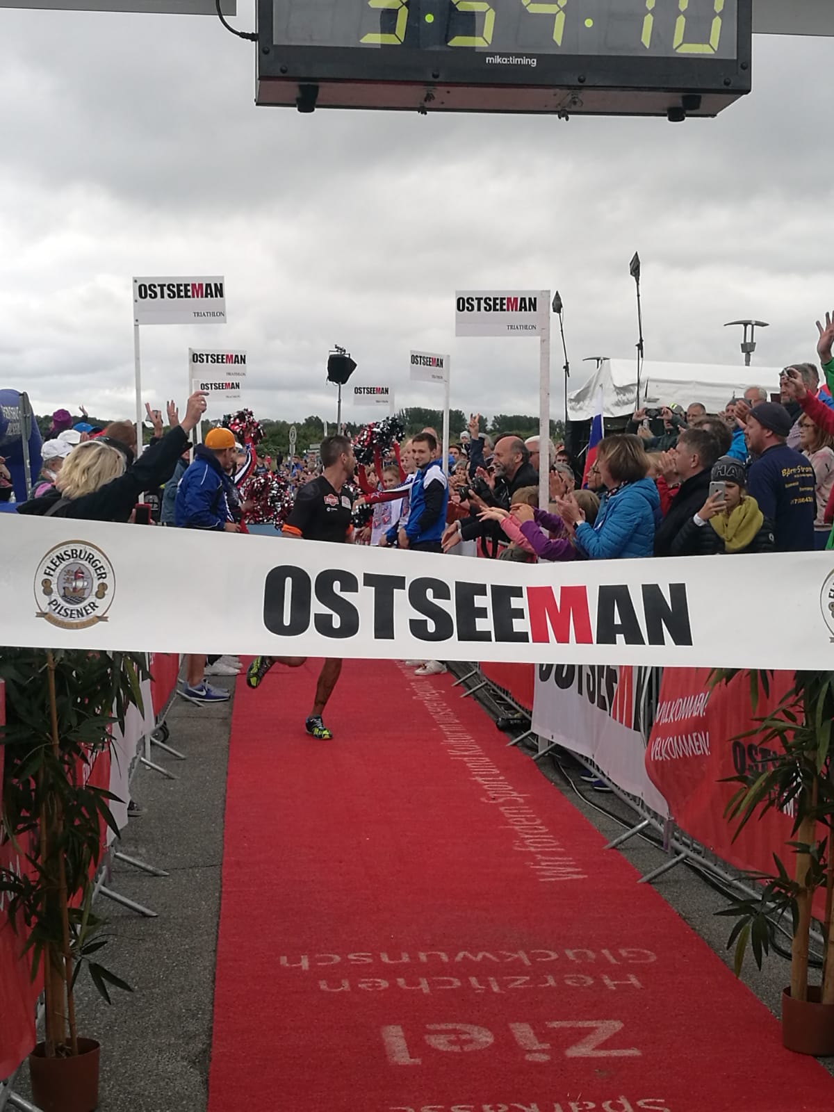 Anschließend wurde in der Wechselzone auf dem Yachthafen-Gelände der Neo gegen das Triathlonrad eingetauscht und 90 km geradelt. Danach ging es auf die neue Laufstrecke, die nun nicht mehr wie im Vorjahr von Damp aus nach Norden, sondern nach Süden führt. Die neue Laufstrecke führt im ersten Teil durch die schöne Dünenlandschaft parallel zum Strand und knickt dann ein bisschen ins Hinterland ab. Der Untergrund auf dem ersten Drittel besteht aus Sand, der allerdings fest und gut zu laufen ist. Sean Donelly war als erster nach 3:52:15 h zurück im Ziel auf der Niebymole und wurde gebührend von den Zuschauern empfangen. Trotz des trüben Wetters, das für die Athleten allerdings recht angenehm war, war die Stimmung im Ziel hervorragend und auch der Durst nach Zielverpflegung von Wittenseer groß. Alle Ergebnisse findet ihr hier: http://gluecksburg-half.r.mikatiming.de/2018/
