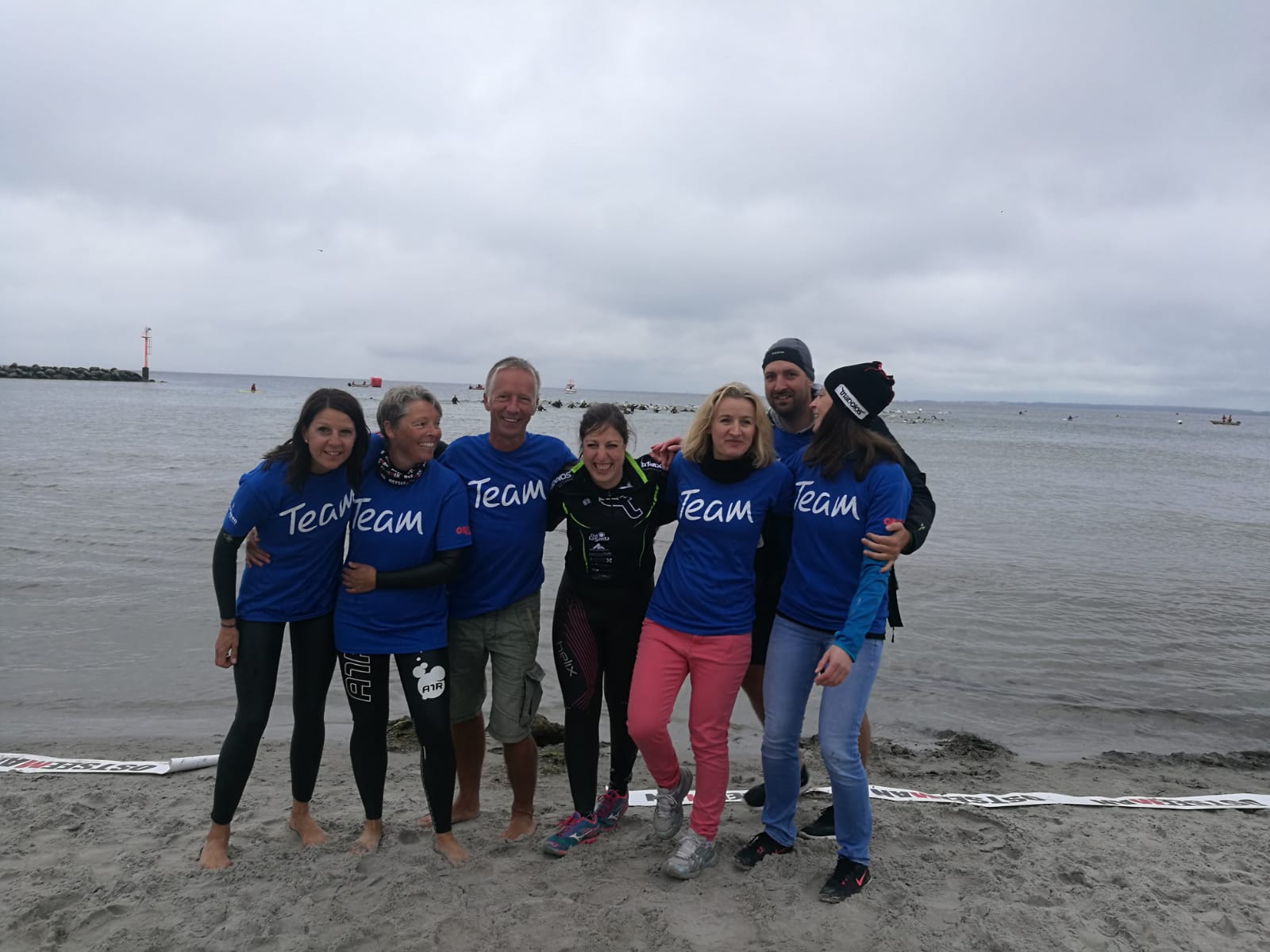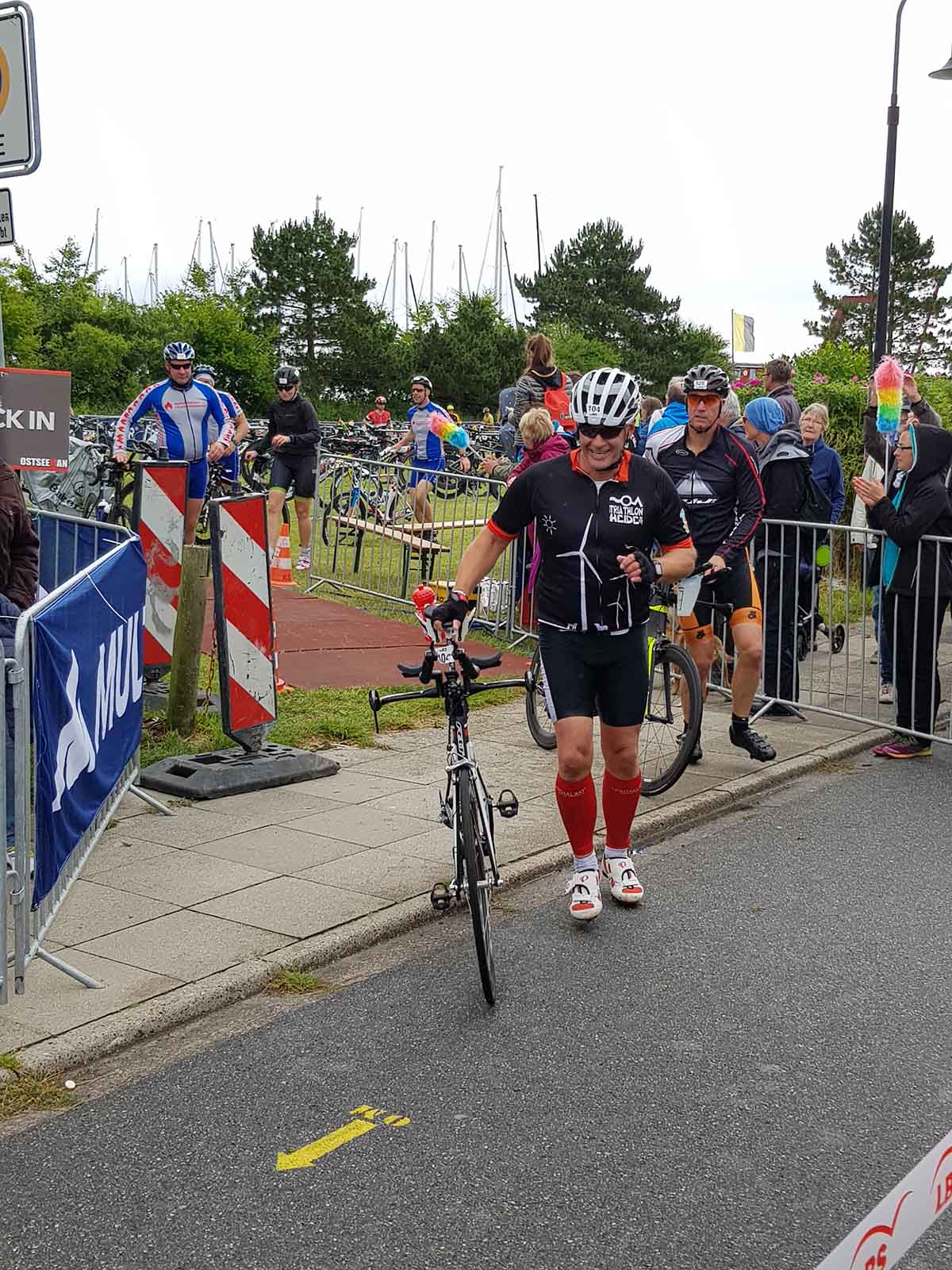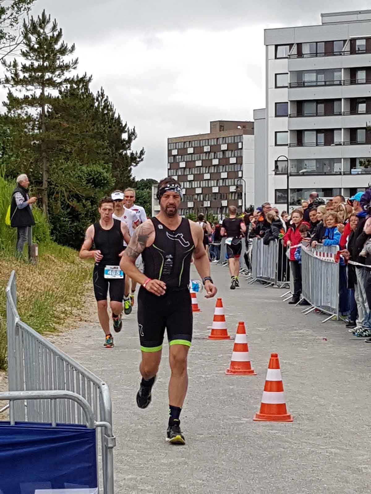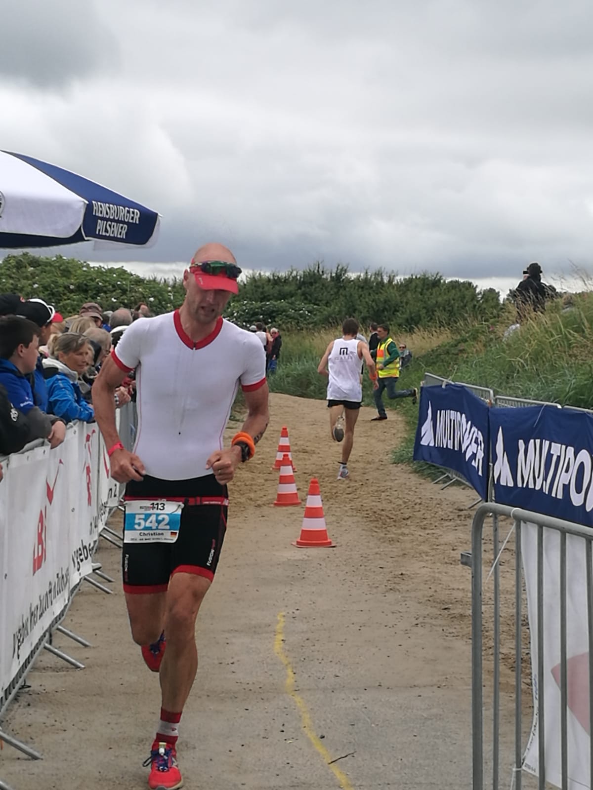 Anschließend wurde in der Wechselzone auf dem Yachthafen-Gelände der Neo gegen das Triathlonrad eingetauscht und 90 km geradelt. Danach ging es auf die neue Laufstrecke, die nun nicht mehr wie im Vorjahr von Damp aus nach Norden, sondern nach Süden führt. Die neue Laufstrecke führt im ersten Teil durch die schöne Dünenlandschaft parallel zum Strand und knickt dann ein bisschen ins Hinterland ab. Der Untergrund auf dem ersten Drittel besteht aus Sand, der allerdings fest und gut zu laufen ist. Sean Donelly war als erster nach 3:52:15 h zurück im Ziel auf der Niebymole und wurde gebührend von den Zuschauern empfangen. Trotz des trüben Wetters, das für die Athleten allerdings recht angenehm war, war die Stimmung im Ziel hervorragend und auch der Durst nach Zielverpflegung von Wittenseer groß. Alle Ergebnisse findet ihr hier: http://gluecksburg-half.r.mikatiming.de/2018/