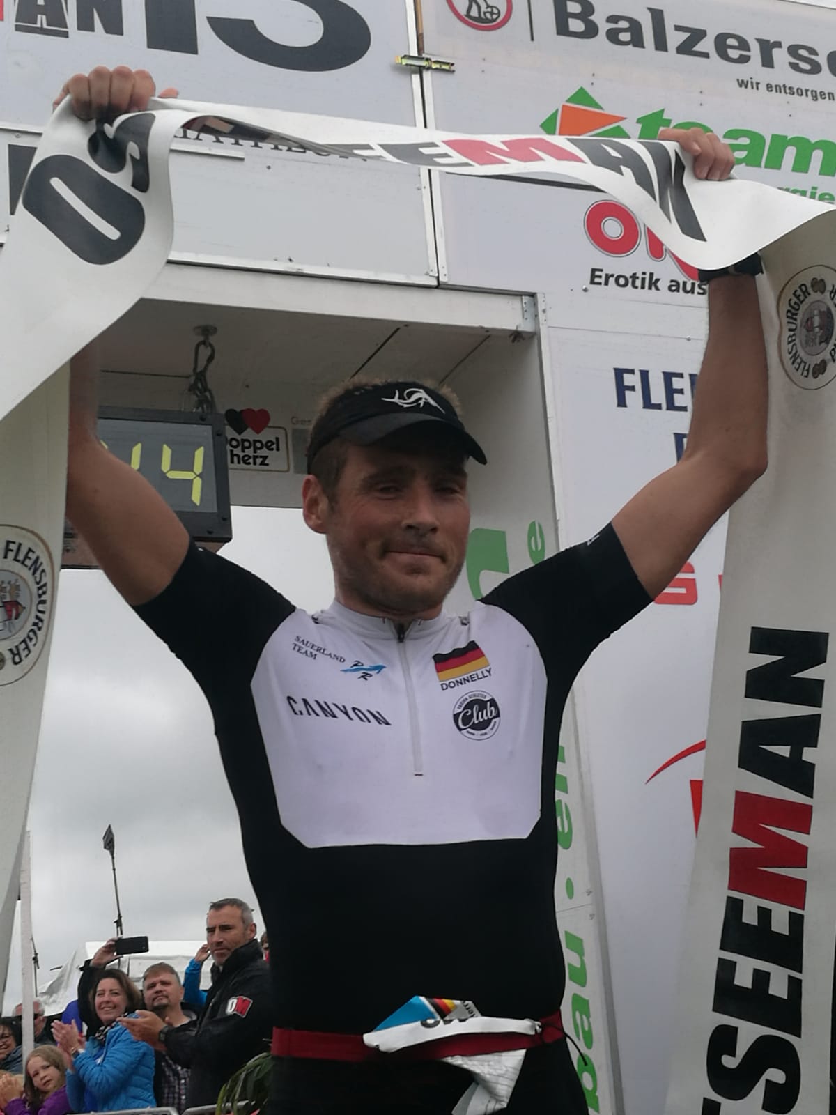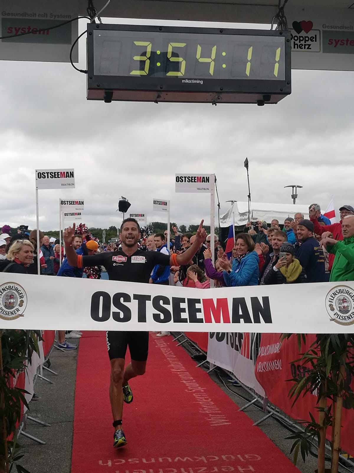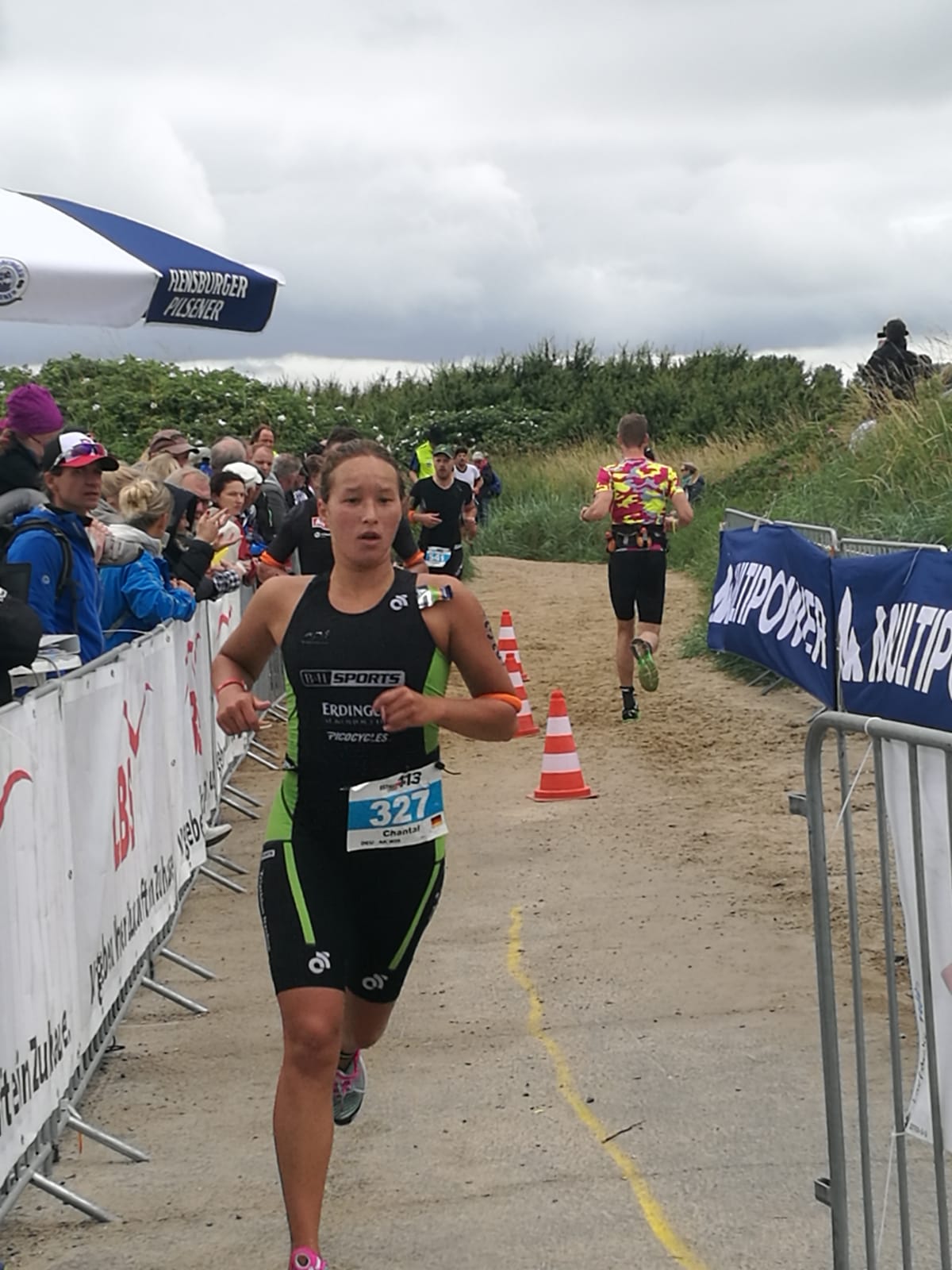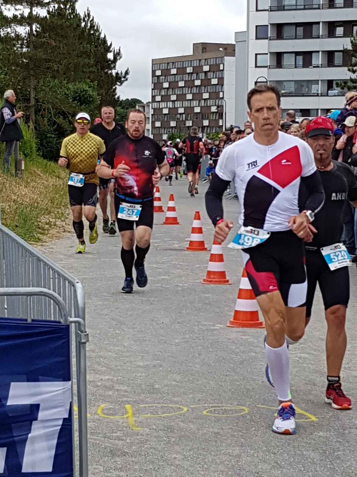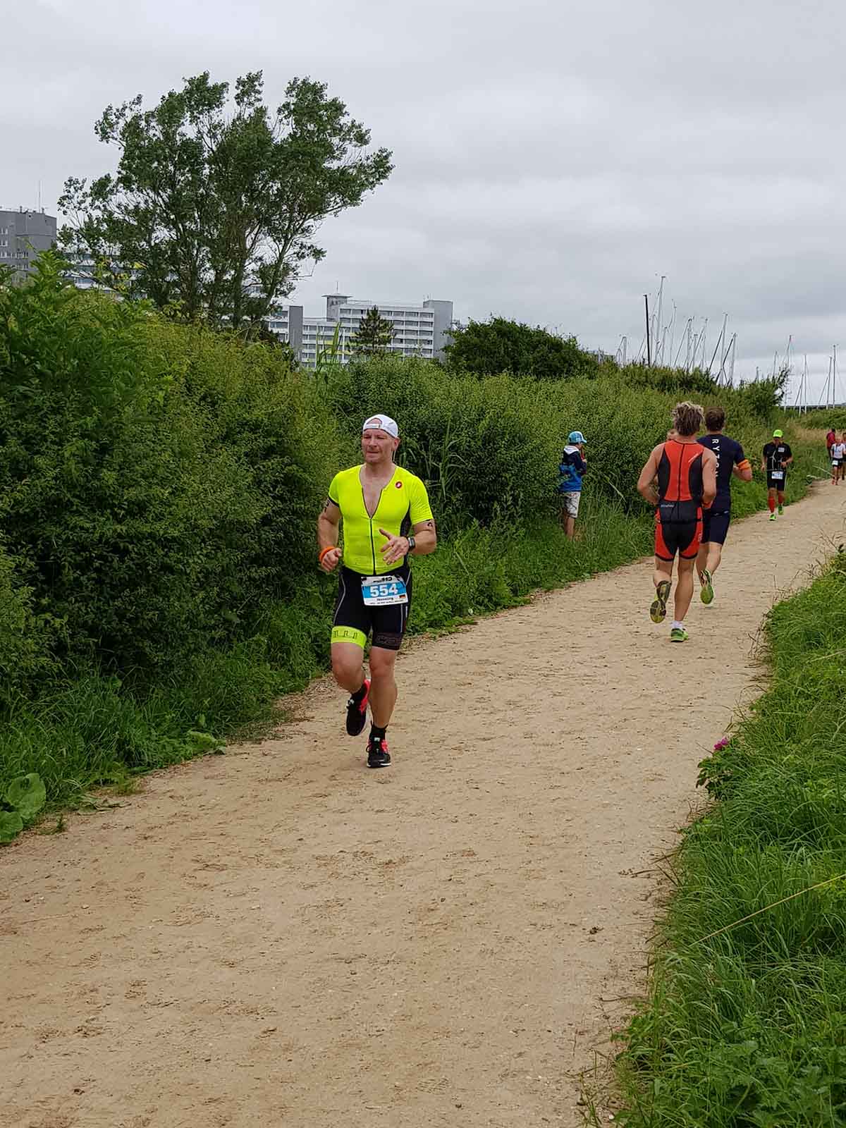 Anschließend wurde in der Wechselzone auf dem Yachthafen-Gelände der Neo gegen das Triathlonrad eingetauscht und 90 km geradelt. Danach ging es auf die neue Laufstrecke, die nun nicht mehr wie im Vorjahr von Damp aus nach Norden, sondern nach Süden führt. Die neue Laufstrecke führt im ersten Teil durch die schöne Dünenlandschaft parallel zum Strand und knickt dann ein bisschen ins Hinterland ab. Der Untergrund auf dem ersten Drittel besteht aus Sand, der allerdings fest und gut zu laufen ist. Sean Donelly war als erster nach 3:52:15 h zurück im Ziel auf der Niebymole und wurde gebührend von den Zuschauern empfangen. Trotz des trüben Wetters, das für die Athleten allerdings recht angenehm war, war die Stimmung im Ziel hervorragend und auch der Durst nach Zielverpflegung von Wittenseer groß. Alle Ergebnisse findet ihr hier: http://gluecksburg-half.r.mikatiming.de/2018/