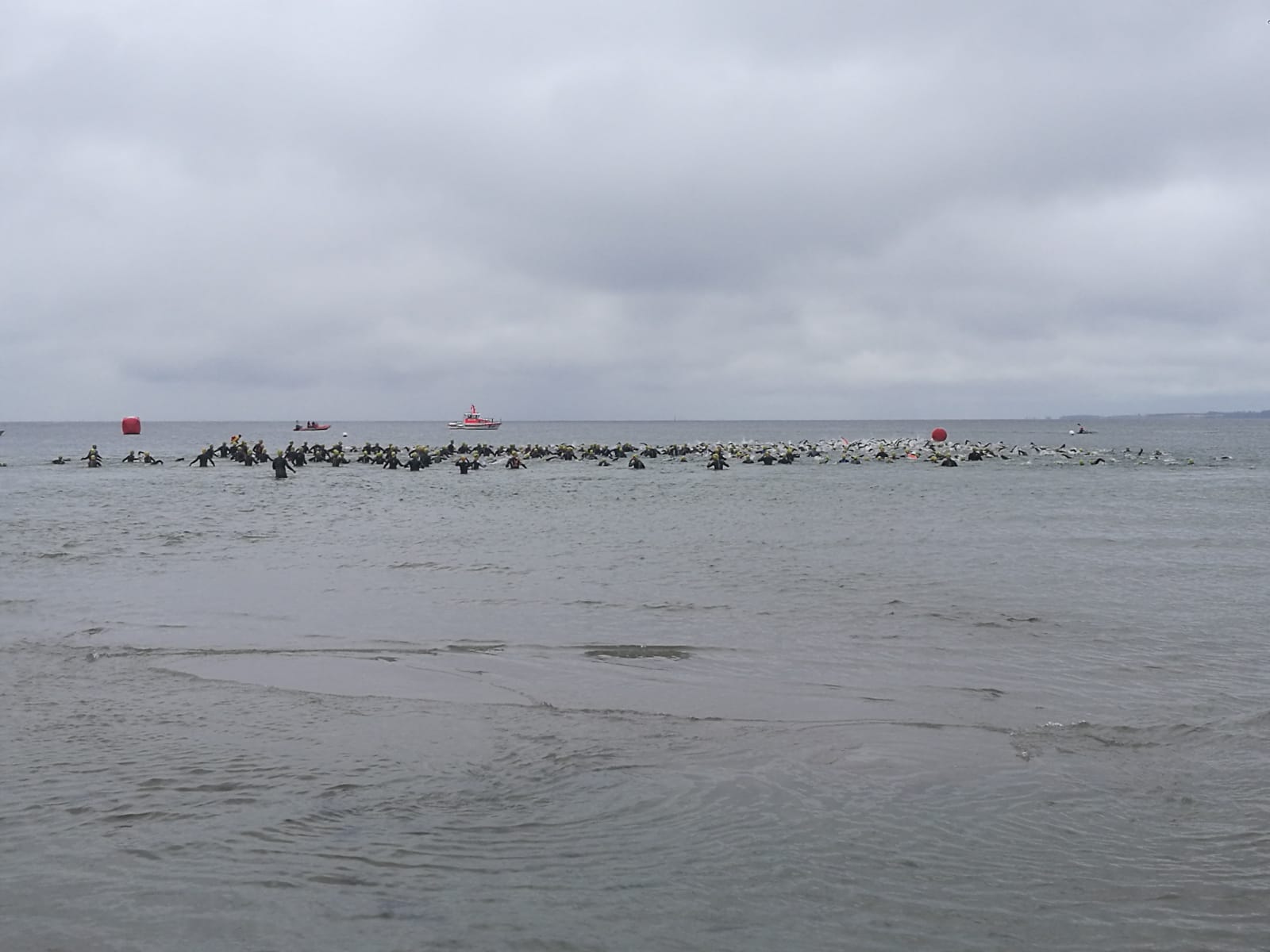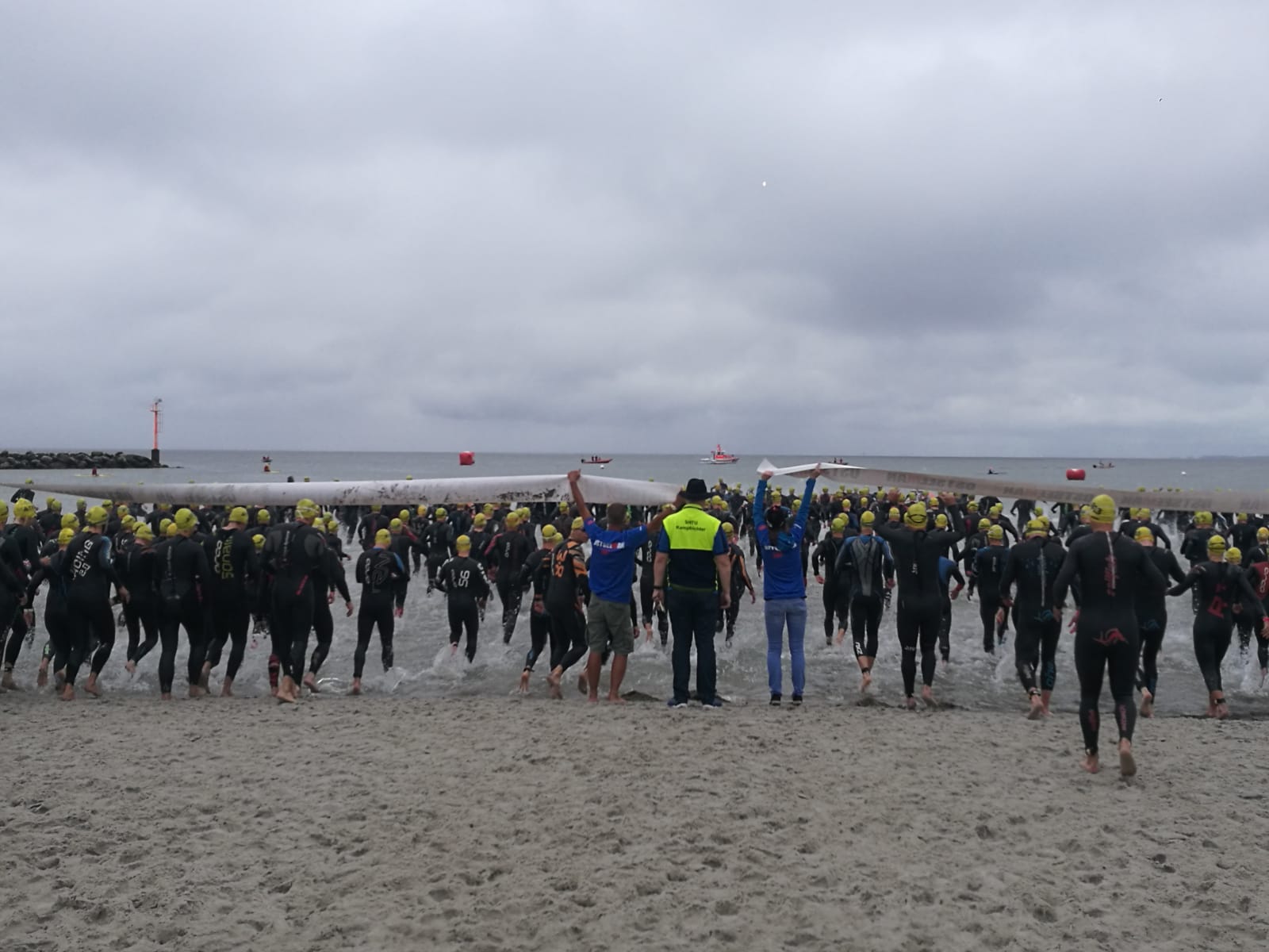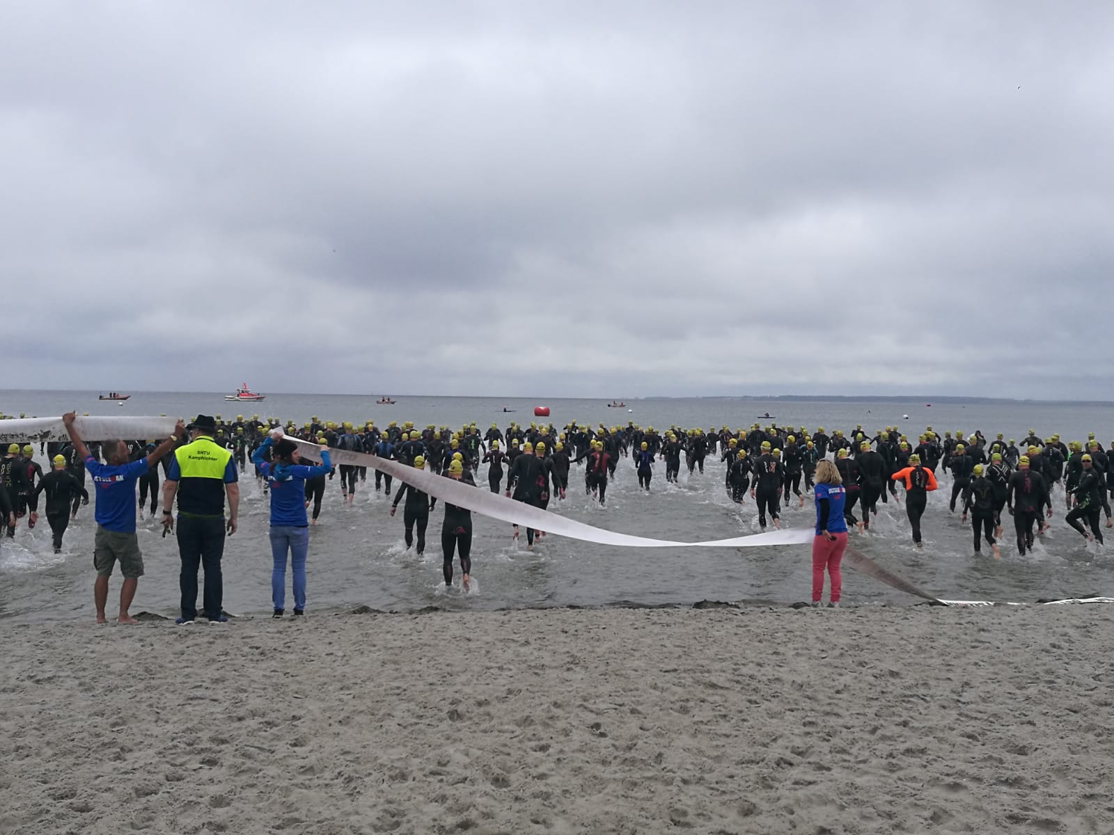 1100 Starter bei der 2. Auflage des Ostseeman 113 Damp. Die Ostsee-Mitteldistanz wartete mit einer neuen Laufstrecke auf. Auch der neue Zielbereich auf der Mole ist nun noch näher an den Strand gerückt. Los ging es für die Einzelstarter des OstseeMan 2018 um 9.00 Uhr vom Strand aus auf die Schwimmstrecke durch die spiegelglatte, 15 Grad kalte Ostsee.