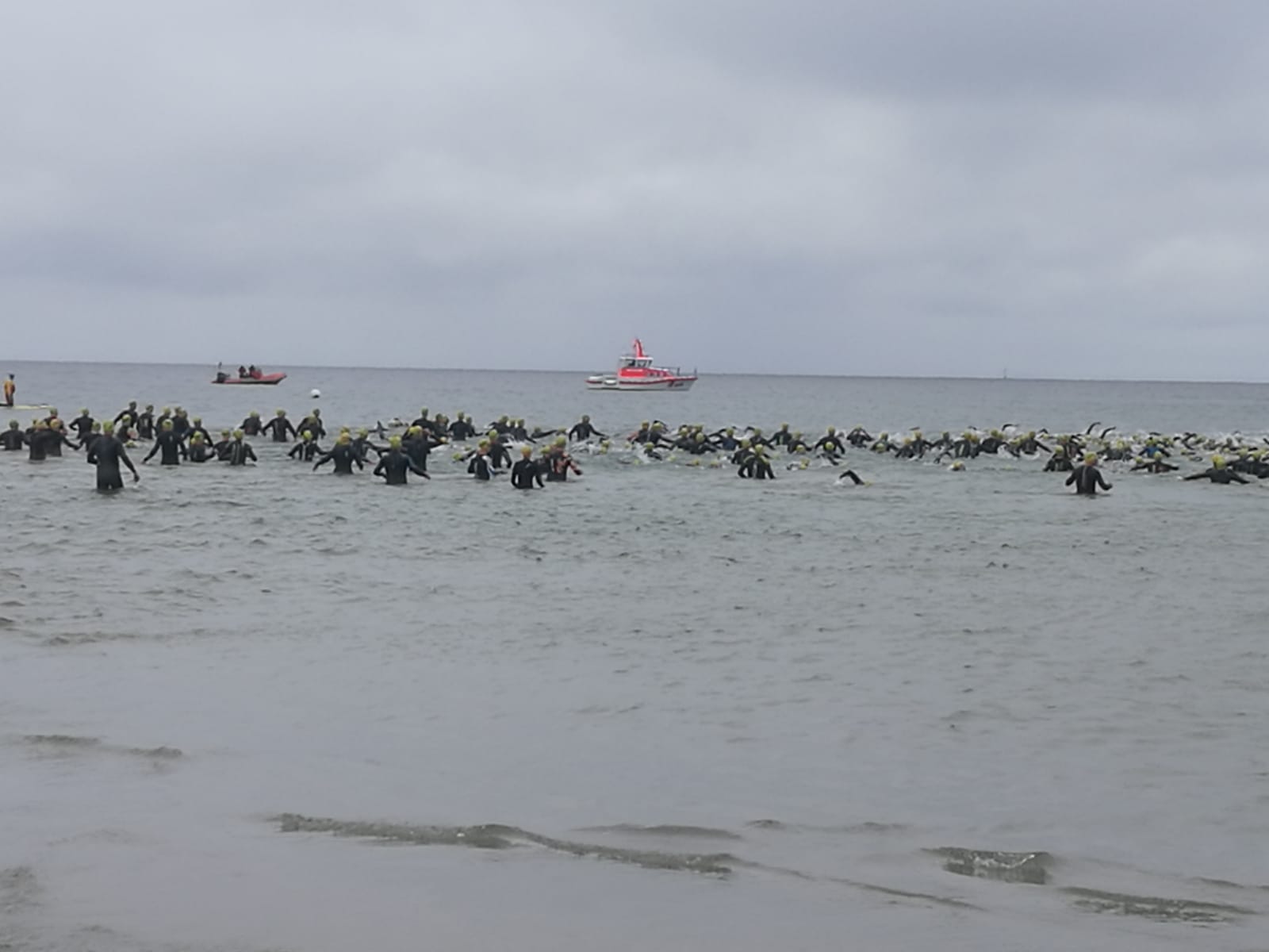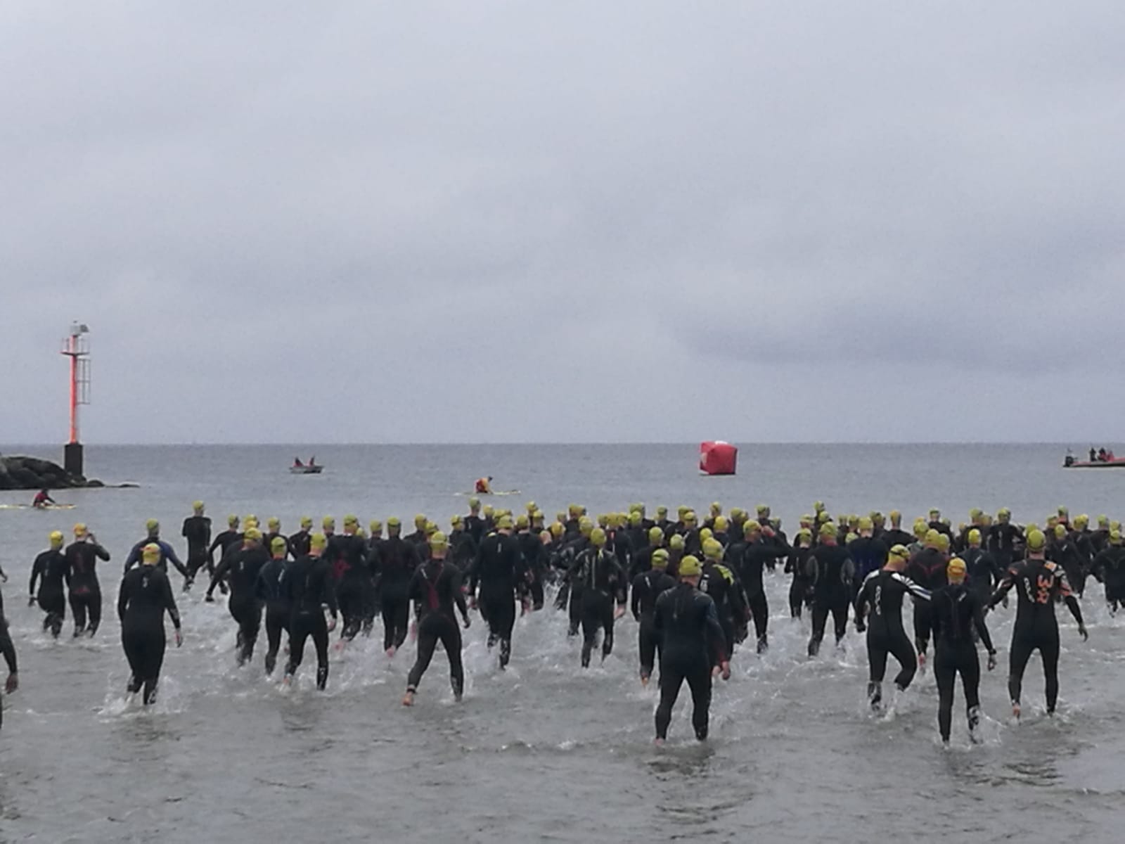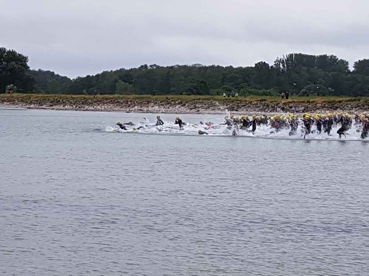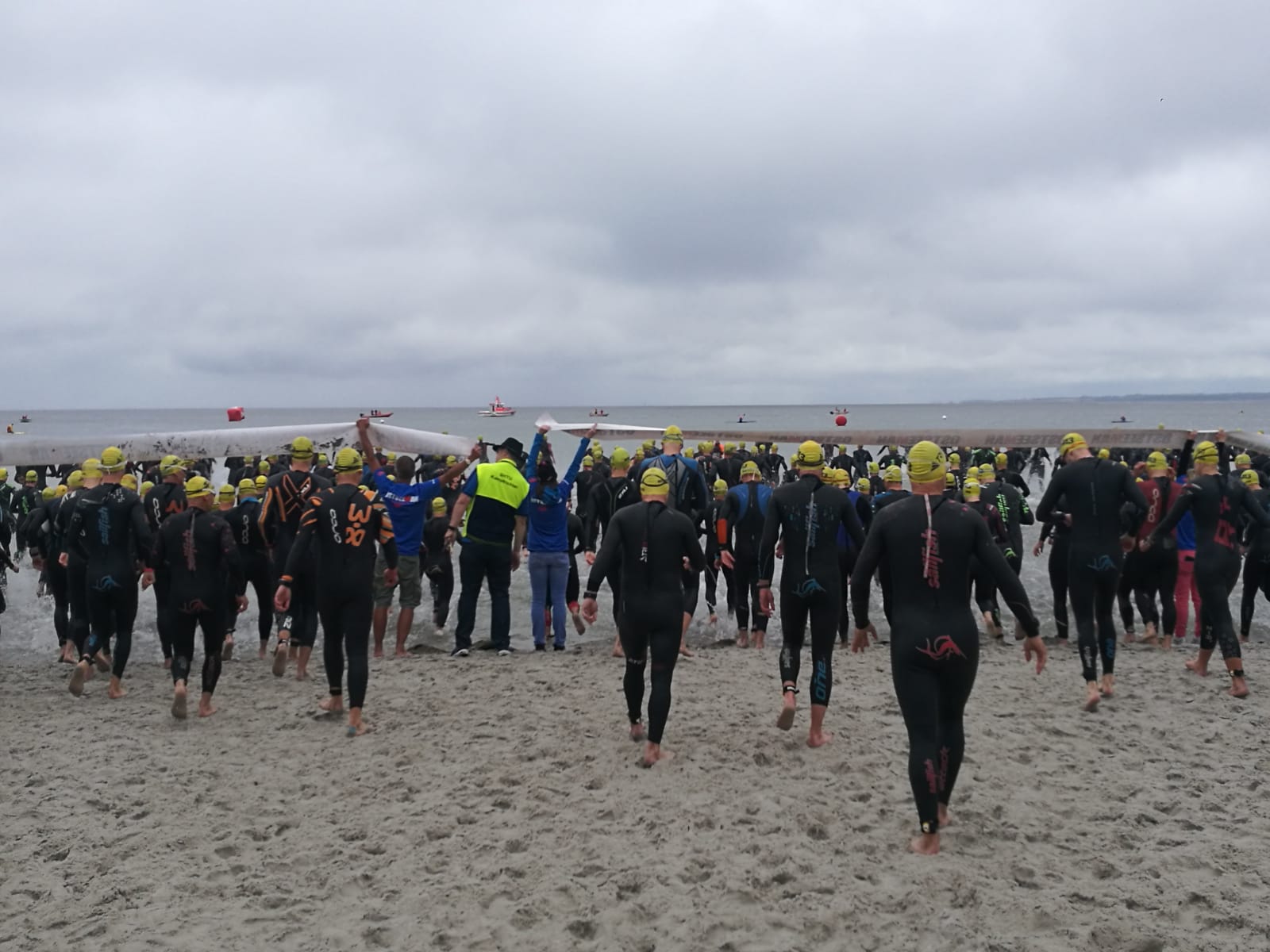 1100 Starter bei der 2. Auflage des Ostseeman 113 Damp. Die Ostsee-Mitteldistanz wartete mit einer neuen Laufstrecke auf. Auch der neue Zielbereich auf der Mole ist nun noch näher an den Strand gerückt. Los ging es für die Einzelstarter des OstseeMan 2018 um 9.00 Uhr vom Strand aus auf die Schwimmstrecke durch die spiegelglatte, 15 Grad kalte Ostsee.