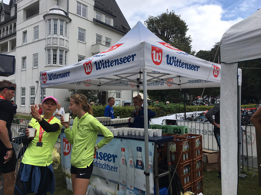Nachdem um 7 Uhr der Startschuss für den OstseeMan und um 7:20 Uhr für den OM113 gefallen war, machte sich das Team der Wittenseer Quelle pünktlich auf den Weg nach Glücksburg um an diesem Event die Triathletinnen und Triathleten mit bunter Wittenseer-Getränkevielfalt zu erfrischen.