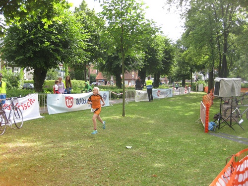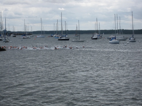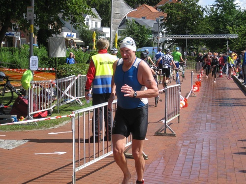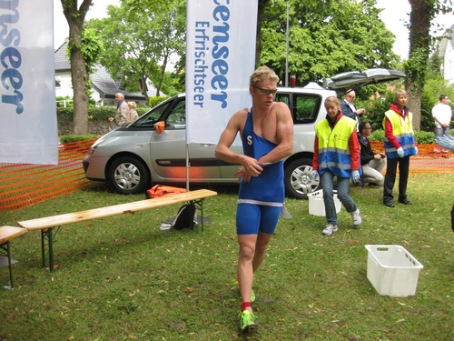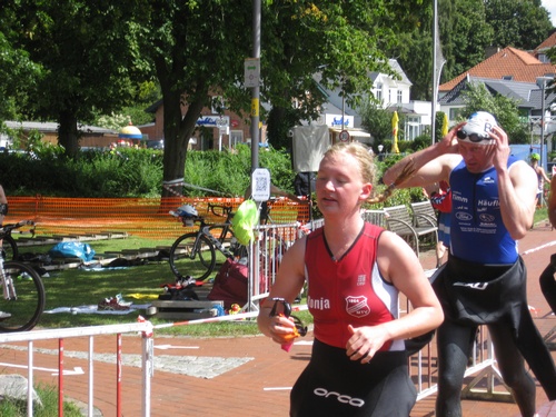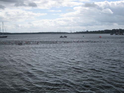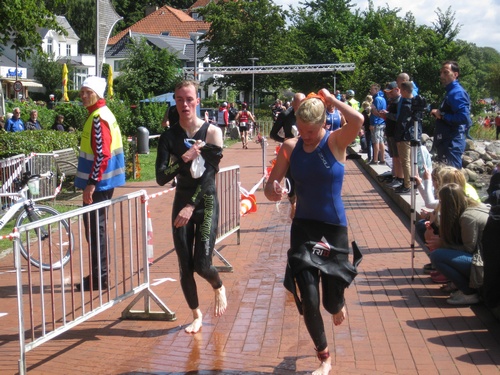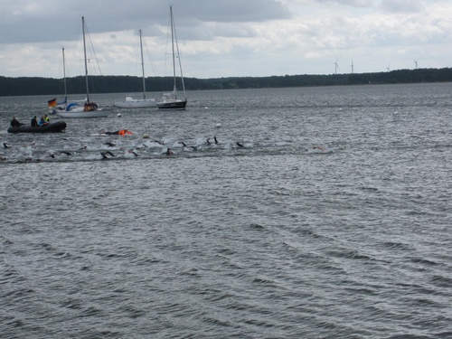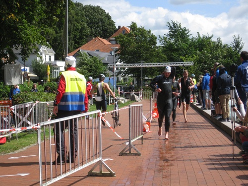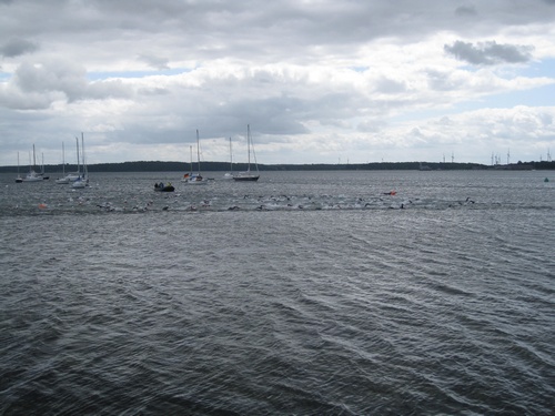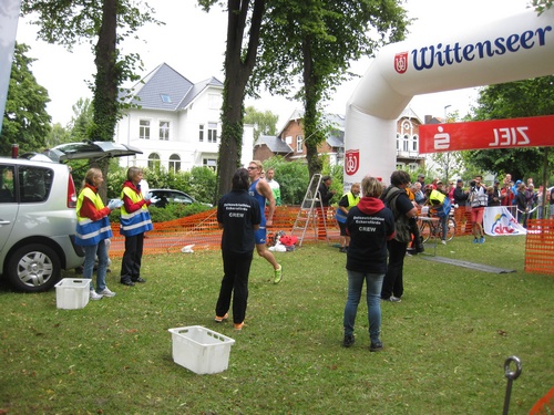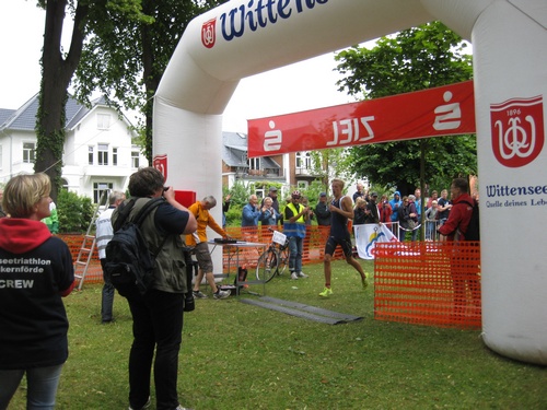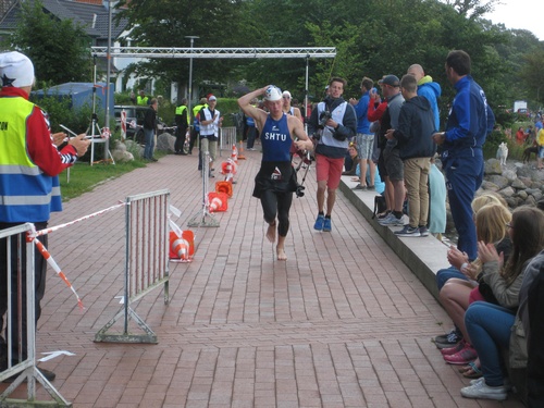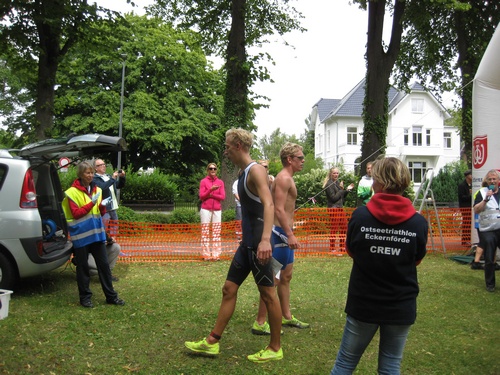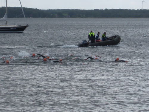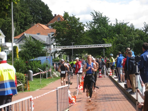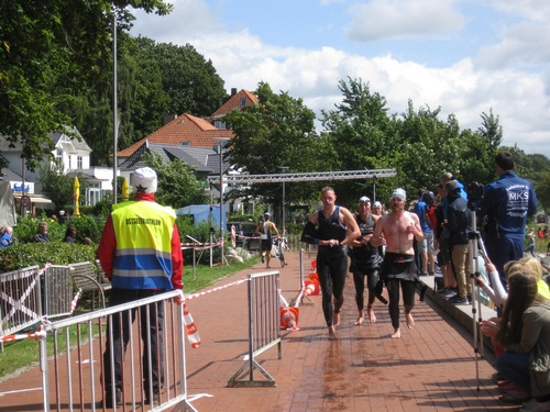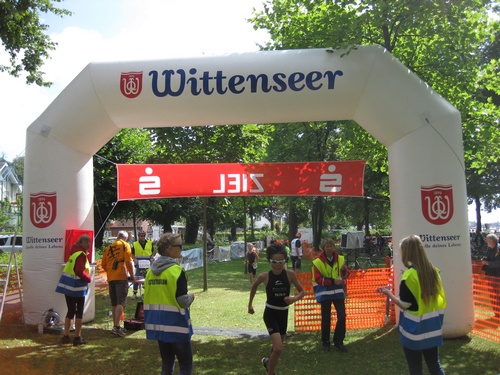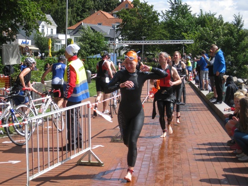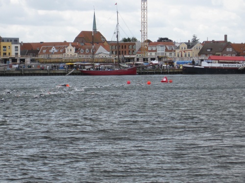 Der dritte Ostseetriathlon in Eckernförde war auch in diesem Jahr eine rund um gelungene Veranstaltung. Trotz des vorhergesagten Sturms, blieb es eher windstill und auch die Sonne zeigte sich, sodass für alle Teilnehmer sehr gute Bedingungen vorhanden waren. Den Angang machten drei altersdifferenzierte Kindergruppen, die allerdings, auf Grund der erfrischenden 17,5° Celsius Wassertemperatur, lediglich einen Duathlon liefen. Zur Mittagszeit startete dann sowohl der Volkstriathlon als auch der Staffeltriathlon. Die rund 360 Teilnehmer sprangen um 12:30 Uhr in das kühle Nass. Danach ging es auf die 18 km lange Radstrecke und die 5 km lange Laufstrecke entlang der eckernförder Prommenade mit toller Aussicht auf die Bucht. Männlicher Sieger dabei wurde Lennart Sievers und bei den Frauen gewann die mehrfache deutsche Meisterin Bettina Lange. Neben der Wettkampfstrecke gab es ein tolles Helferteam, welches für eine üppige und vielseitige Verpflegung aller Teilnehmer, Zuschauer und anderweitiger Helfer sorgte. Die Stimmung war sehr positiv und heiter, wir freuen uns auf das nächste Jahr!