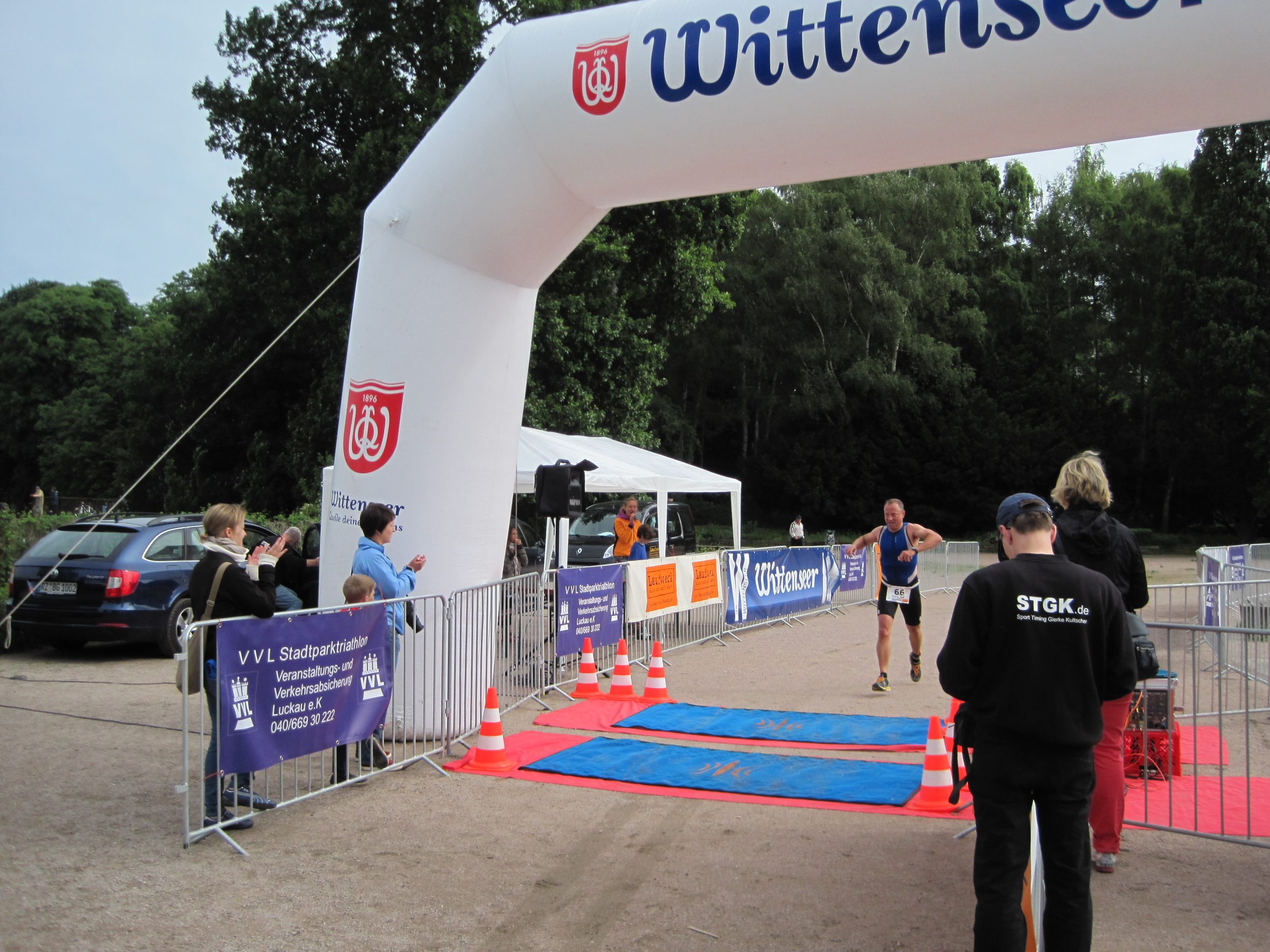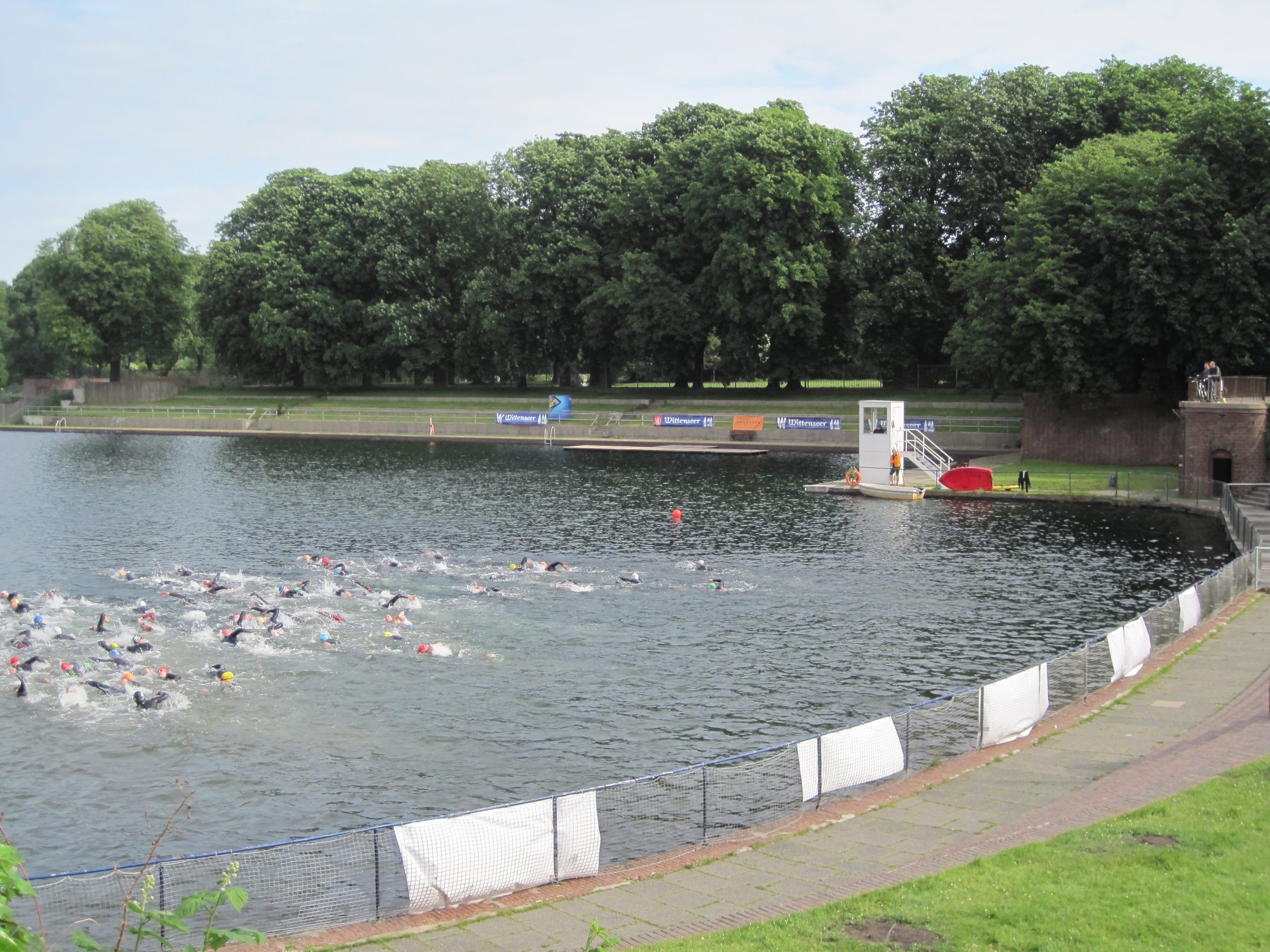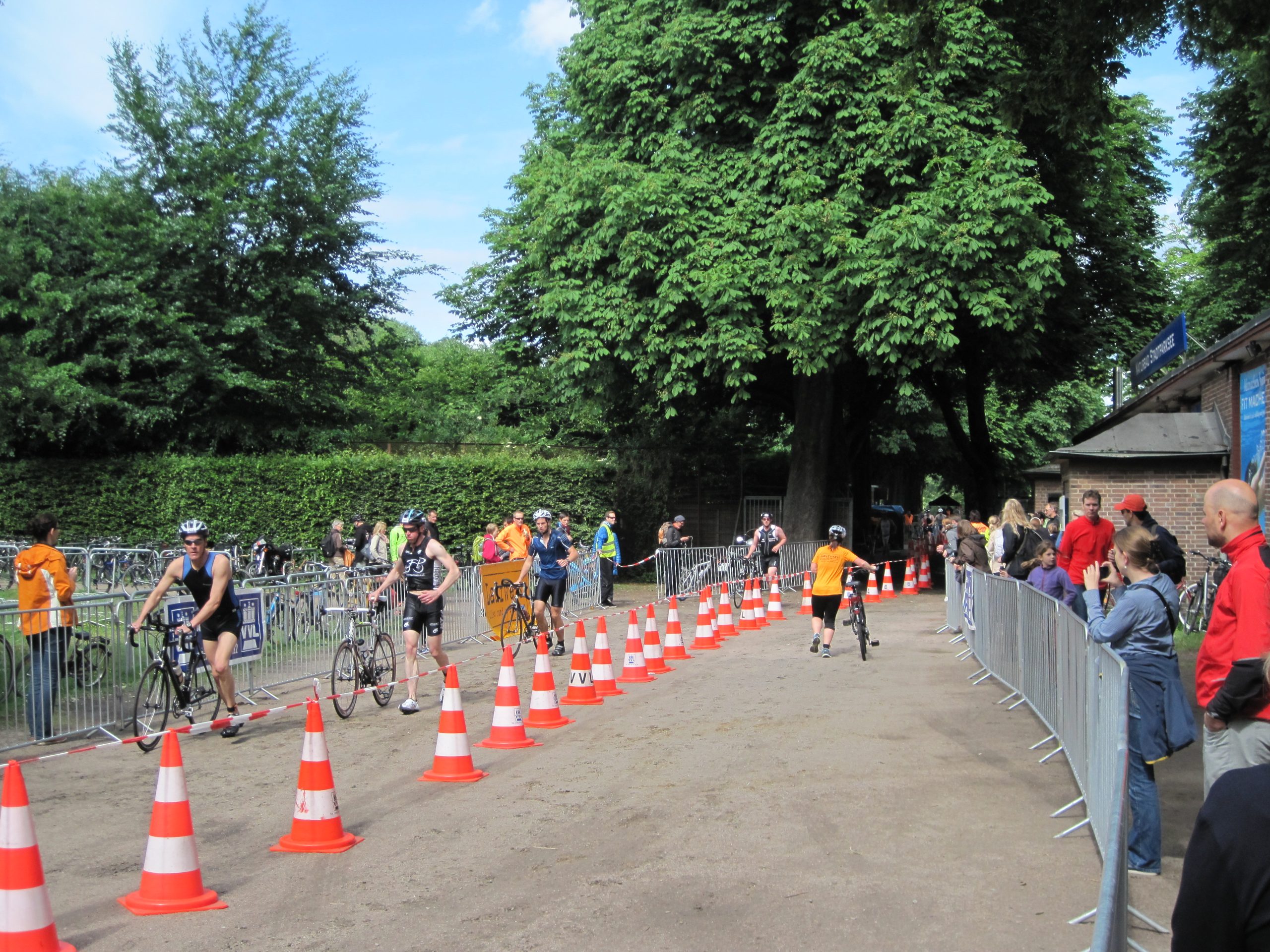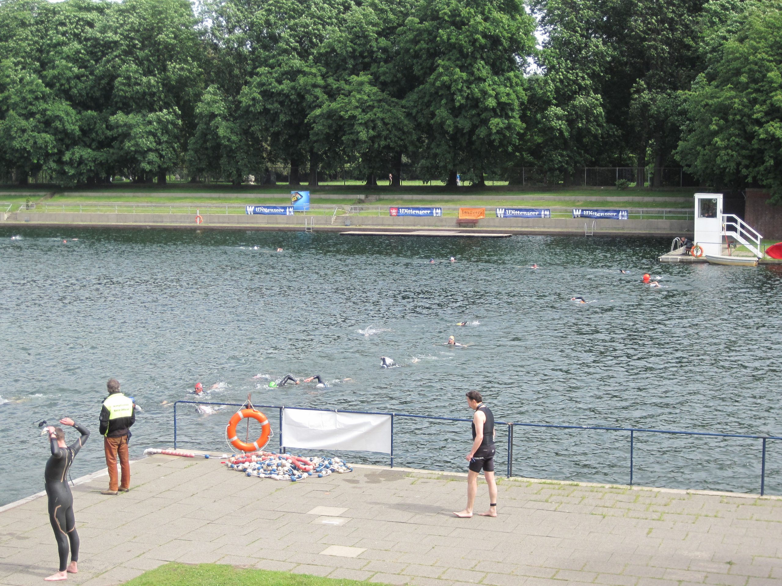 Der 14. Stadtparktriathlon war wie in den letzten Jahren frühzeitig ausgebucht. 1200 Triathleten schwammen, radelten und liefen im und um den Hamburger Stadtpark, angefeuert von vielen Zuschauern an der Strecke und im Ziel. Das Wetter war „norddeutsch im Juni“, zumindest kein Sturm und Regen.