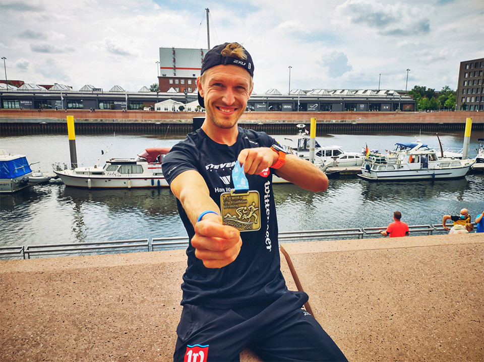Diese Distanz ist mit „nur“ 1,5 Km Schwimmen, 40 Km Rad und 10 Km Laufen also genau die Hälfte meiner eigentlichen Paradedisziplin und wird auch als Kurzdistanz bezeichnet. Es bot sich aber dennoch an die Form dort gegen die Kurzdistanzathleten zu testen, da diese bei uns im Norden (Bremen) ausgetragen wurde und einen sehr guten Reiz für den Körper darstellt.